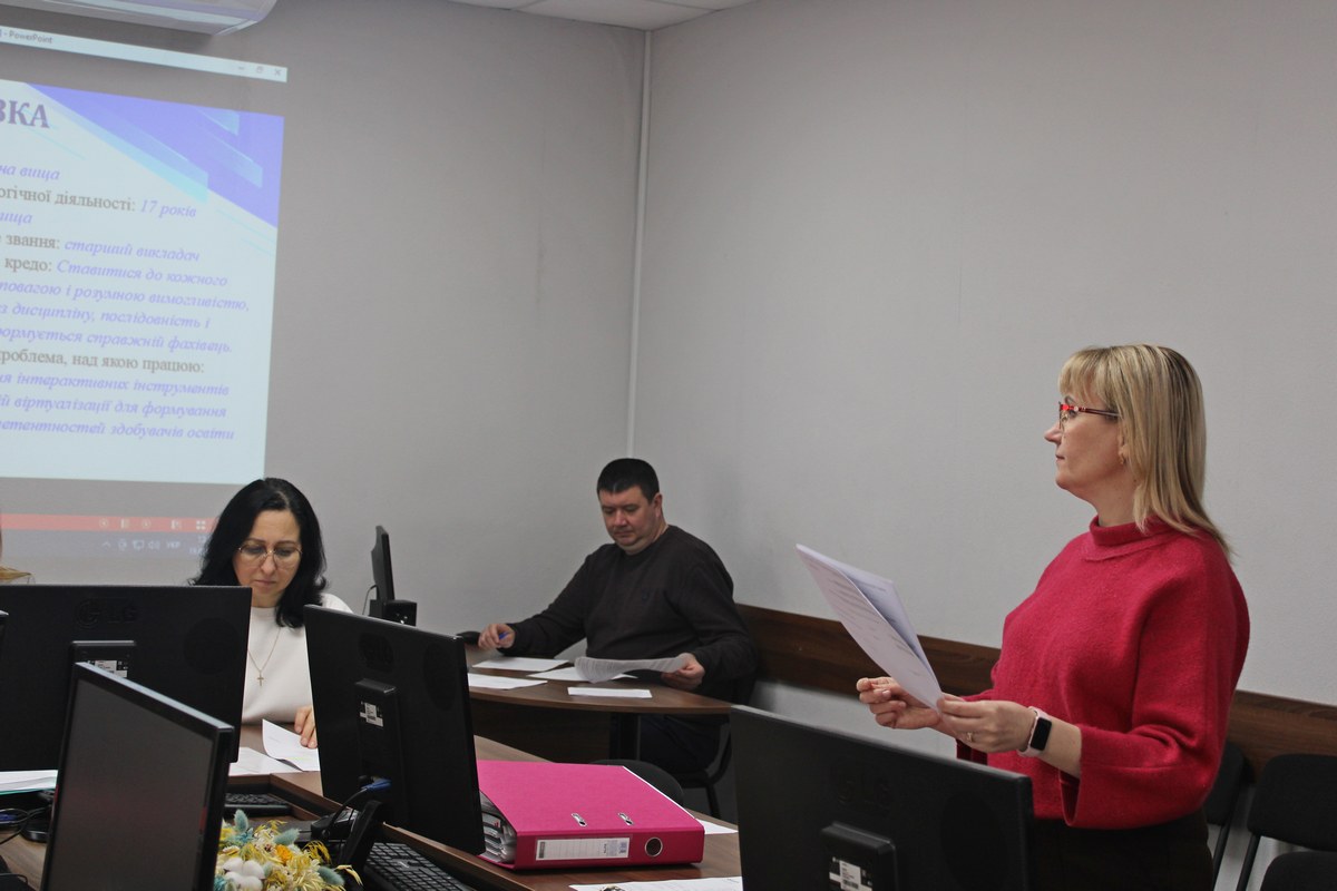 Розпочала засідання голова атестаційної комісії, директор коледжу Олена Литовченко, яка звернула увагу присутніх на основні критерії щодо підтвердження або встановлення кваліфікаційної категорії «спеціаліст вищої категорії» та педагогічних звань. Також підкреслила, що метою атестації педагогічних працівників є, перш за все, стимулювання цілеспрямованого і безперервного підвищення рівня їх професійної компетентності, розвитку творчої ініціативи, забезпечення ефективності освітнього процесу.