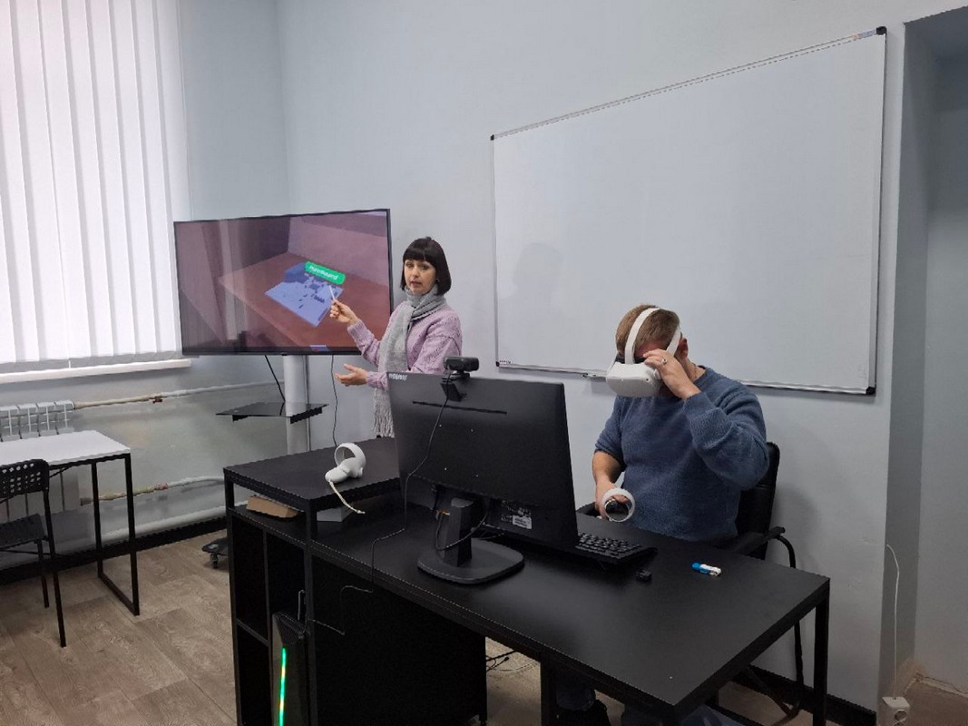 Викладачі циклової комісії з комп’ютерної інженерії забезпечили методичний та практичний супровід заняття. Викладач дисципліни «Архітектура комп’ютерів», Анна КАЛІНІЧЕНКО, нагадала принципи роботи основних компонентів системи та їх взаємодію, тоді як викладач дисципліни «Периферійні пристрої», Дмитро КОЧУР, за допомогою VR-окулярів Oculus Meta Quest у віртуальній реальності продемонстрував способи підключення, налаштування та тестування компонентів комп’ютерної системи.