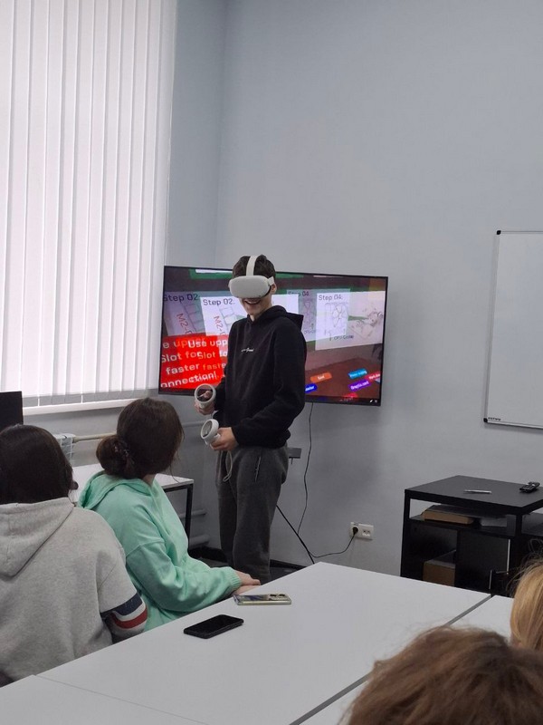 Використання VR-технологій викликало у студентів щирі емоції захоплення та здивування, адже кожен мав змогу самостійно «зібрати» комп’ютер у тривимірному просторі. Після виконання завдань відбулося жваве обговорення, під час якого студенти ділилися враженнями, ставили запитання й отримували практичні поради від викладачів щодо вибору комплектуючих, підключення периферії та оптимізації роботи системи. Атмосфера заняття була натхненною й творчою, сприяючи розвитку командної взаємодії.