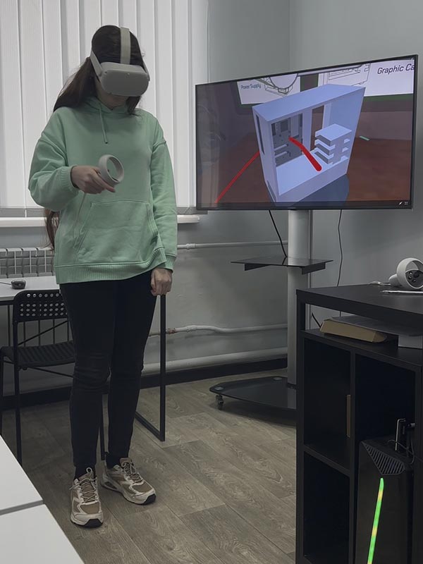 Під час заняття студенти працювали у віртуальному середовищі PC Building Simulator VR, що дозволило відтворити процес складання персонального комп’ютера максимально реалістично. Учасники мали змогу самостійно обирати комплектуючі, здійснювати монтаж центрального процесора, материнської плати, оперативної пам’яті, системи охолодження, накопичувачів та відеокарти. Після цього вони підключали периферійні пристрої, тестували зібрану систему та проводили віртуальну діагностику.