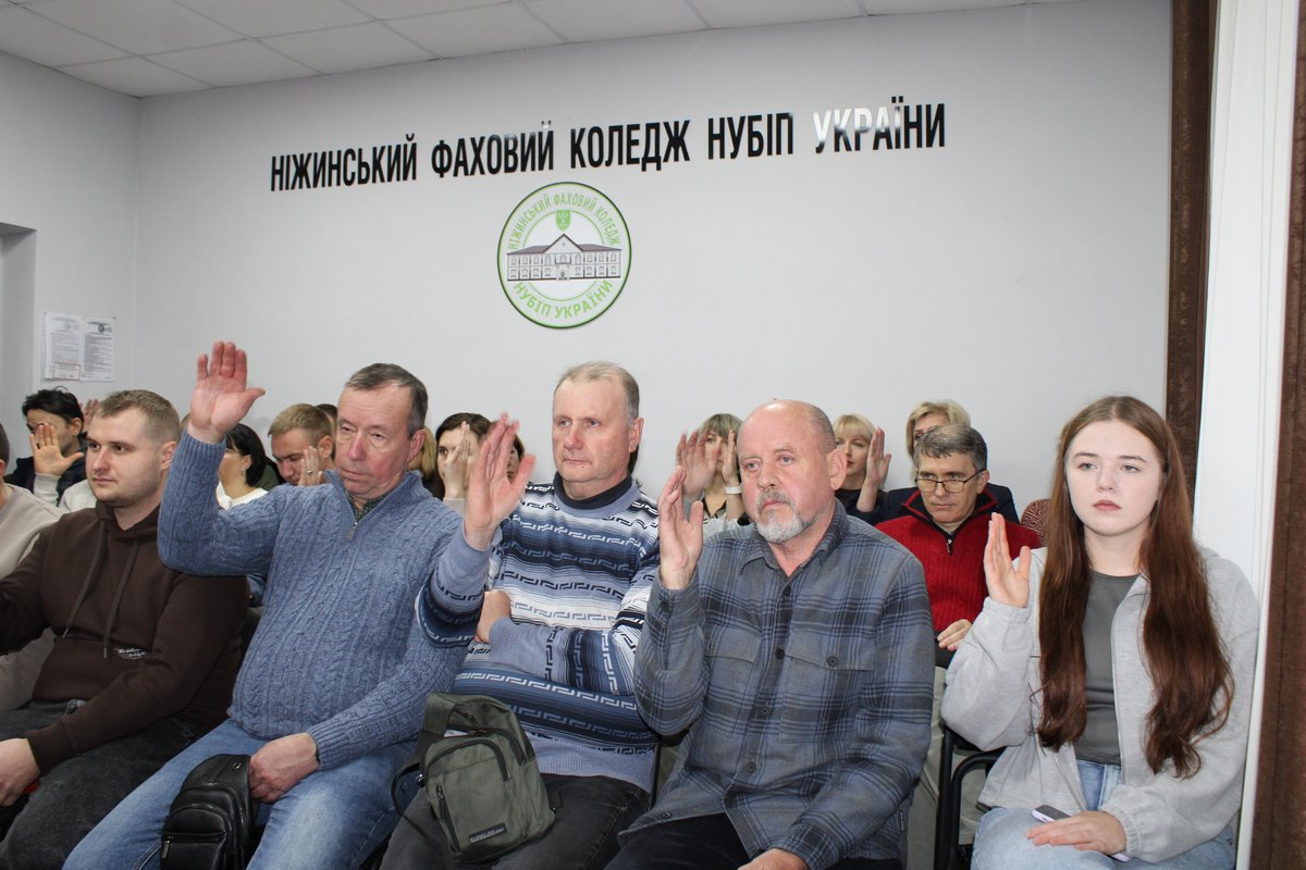 Директор коледжу розпочала засідання словами вдячності Захисникам, які боронять можливість жити та працювати у вільній Україні. Члени Педагогічної ради хвилиною мовчання вшанували пам'ять усіх полеглих за незалежність нашої країни, серед яких і Антон Малишев, випускник закладу освіти, якого навколішки зустрічав у жовтневі дні його рідний Ніжин.