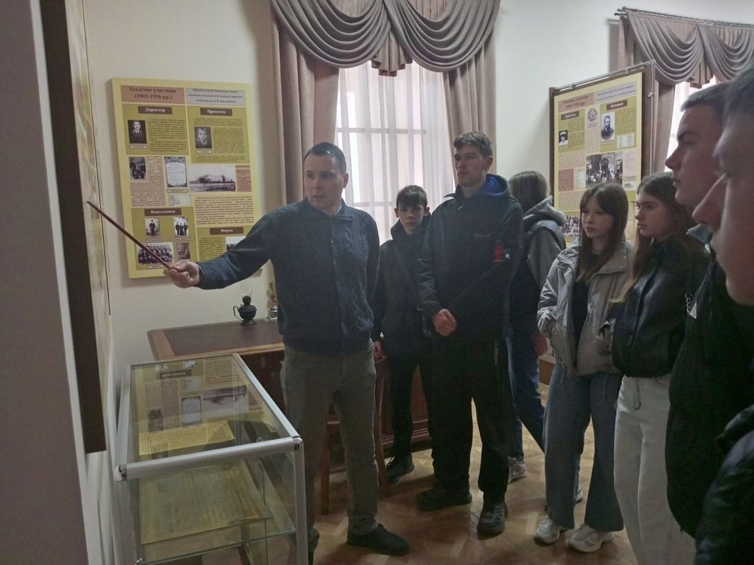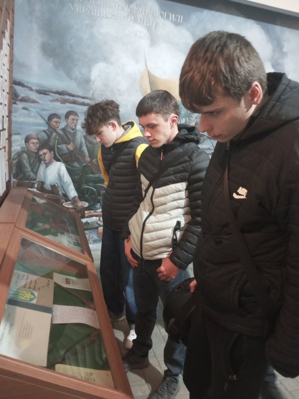 Екскурсію провів професор кафедри соціально-гуманітарних дисциплін, доктор історичних наук Олександр Сидорович, який змістовно та цікаво представив експонати музею, поділився маловідомими фактами з історії закладу освіти та відповів на численні запитання студентів.