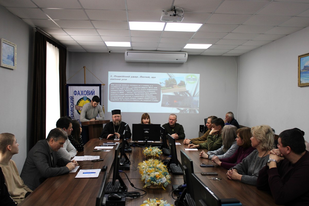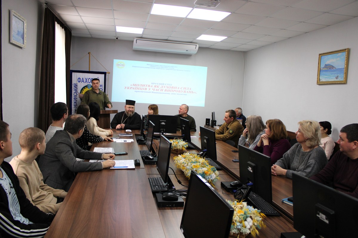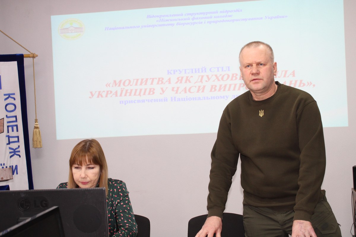 У четверту річницю повномасштабного вторгнення росії в Україну у ВСП «Ніжинський фаховий коледж НУБіП України» відбувся круглий стіл «Молитва як духовна сила українців у часи випробувань», який об’єднав учасників бойових дій, військових ветеранів, представників духовенства, студентів та викладачів коледжу навколо спільної теми – сили віри, пам’яті та незламності українського народу.