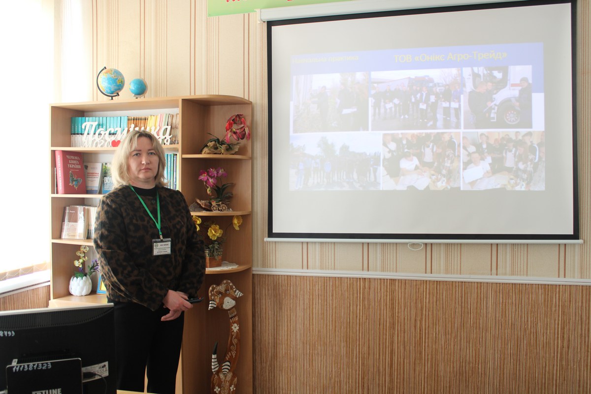 Розпочала зустріч заступник директора з навчально-виховної роботи Тетяна Шеїн, подякувавши майбутнім вступникам та їхнім батькам за виявлений інтерес до нашого закладу освіти, підкреслила, що навіть у складних умовах воєнного часу пріоритетом залишається безпека всіх учасників освітнього процесу. Коледж послідовно дбає про створення безпечного освітнього середовища, забезпечення належних умов для навчання та проживання студентів, а також про підтримку психологічного комфорту кожного члена колективу. Коротко ознайомила з історією коледжу, структурою, його досягненнями, організацією освітнього процесу в умовах воєнного стану, добрими традиціями, що вже склалися в закладі освіти, можливостями творчого та спортивного розвитку під час навчання, матеріально-технічною базою, спеціальностями, за якими здійснюється підготовка фахівців, та перспективами подальшого навчання в Національному університеті біоресурсів і природокористування України. Наголосила на актуальності й широкому попиті на фахівців спеціальностей, за якими здійснюється підготовка в коледжі. Також відзначила потенціал колективу, завдяки наполегливості й професіоналізму якого заклад має вагомі досягнення та впевнено крокує до визначених цілей.
