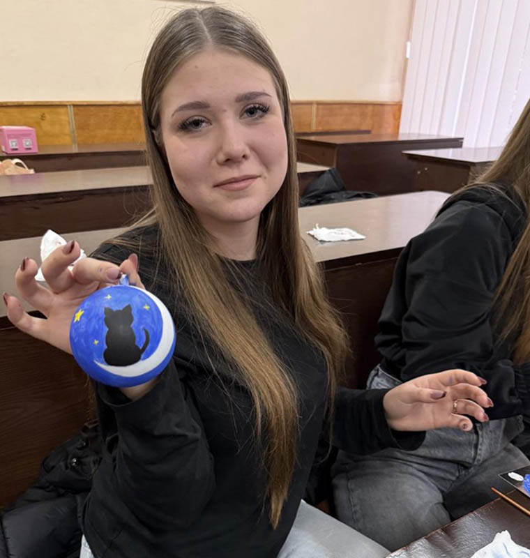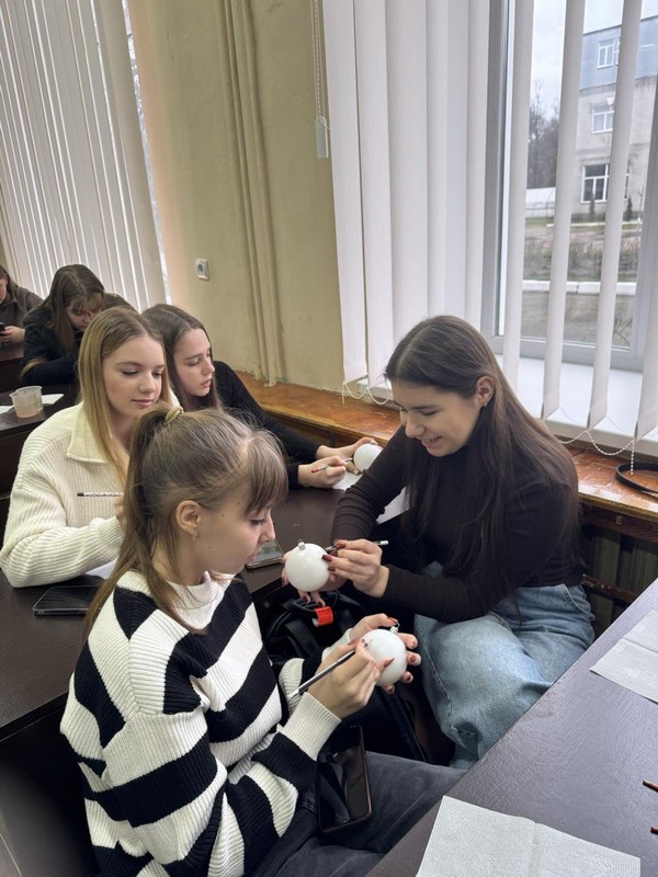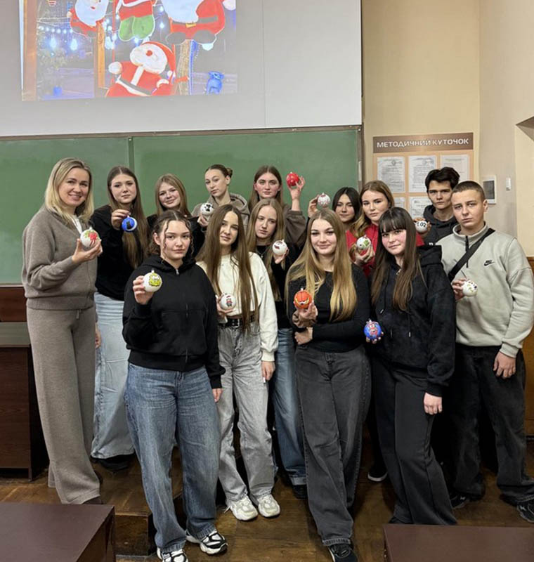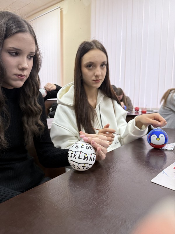 Під час заходу в аудиторії тихо лунала новорічна музика, що створювала особливу атмосферу затишку й творчого натхнення. Студенти з ентузіазмом розписували ялинкові кульки, вкладаючи у свої роботи власне бачення свят, тепло та позитивні емоції. Кожна прикраса вийшла унікальною, адже відображала індивідуальність та креативність свого автора.