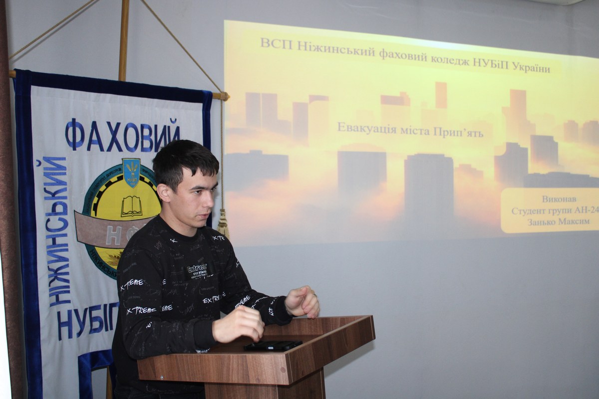 До 40-х роковин аварії на Чорнобильській атомній електростанції у Ніжинському фаховому коледжі НУБіП України було проведено низку важливих заходів, спрямованих на вшанування пам’яті жертв трагедії та підвищення екологічної свідомості студентської молоді.