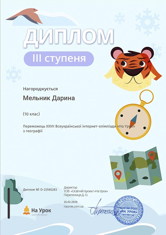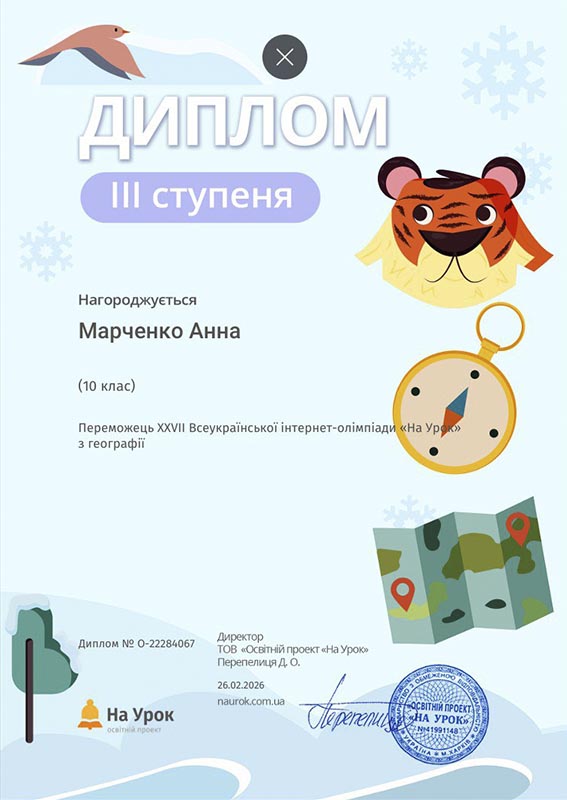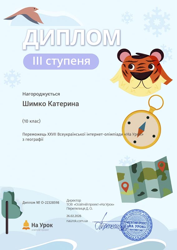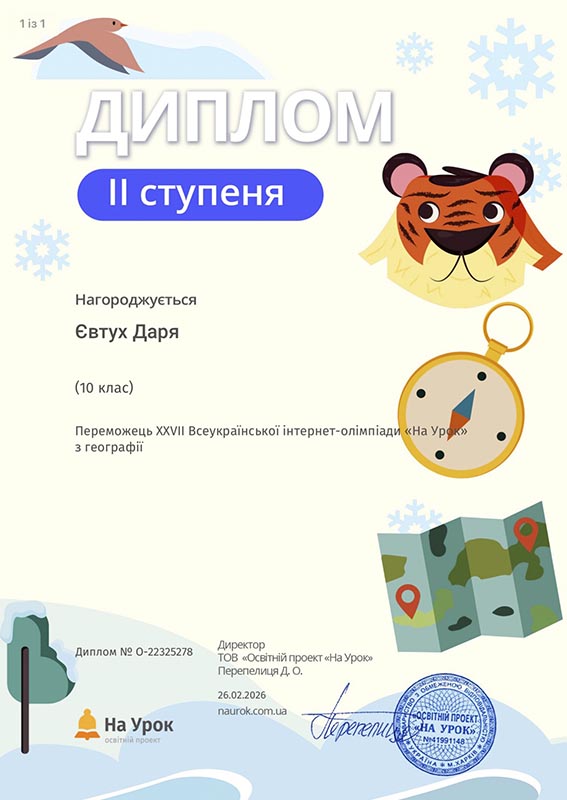 Студенти перших курсів взяли активну участь у зимовій XXVII Всеукраїнській інтернет-олімпіаді «На Урок» з географії, продемонструвавши високий рівень знань, зацікавленість предметом та прагнення до саморозвитку. Інтелектуальні змагання відбувалися на освітній платформі «На Урок», яка щороку об’єднує тисячі учасників із різних куточків України.