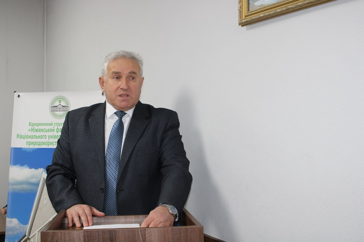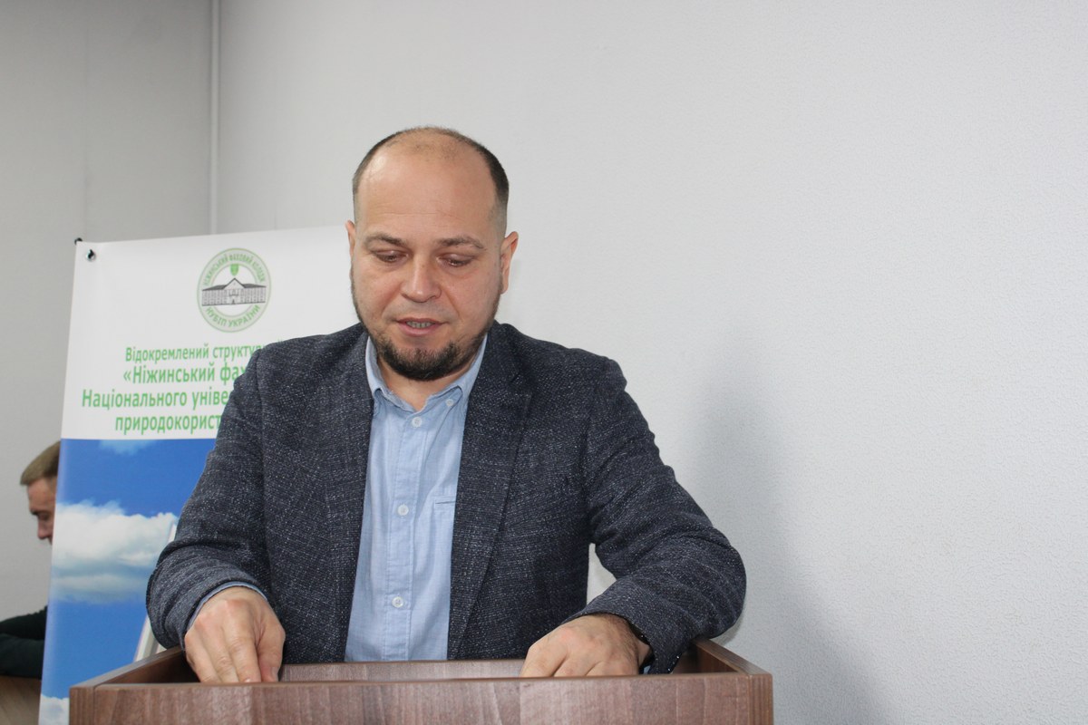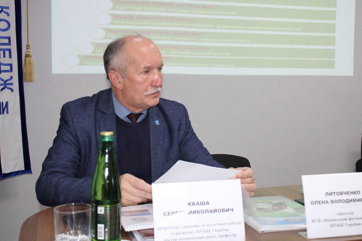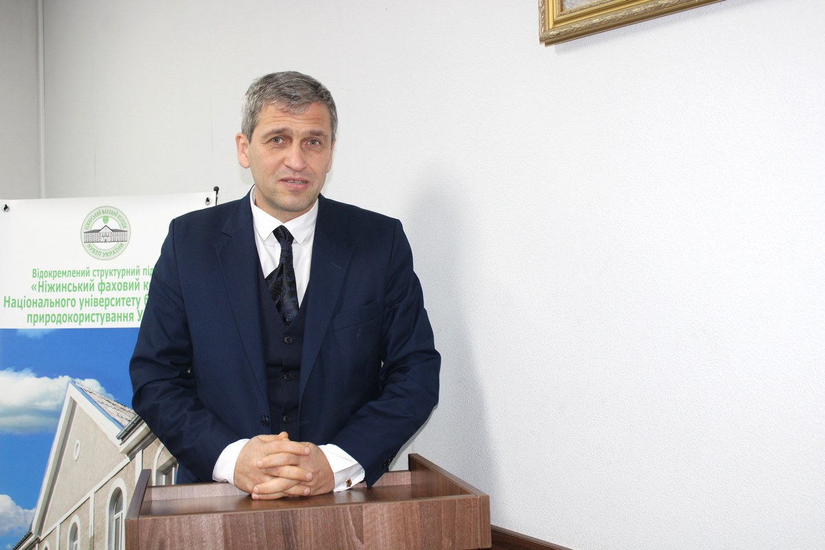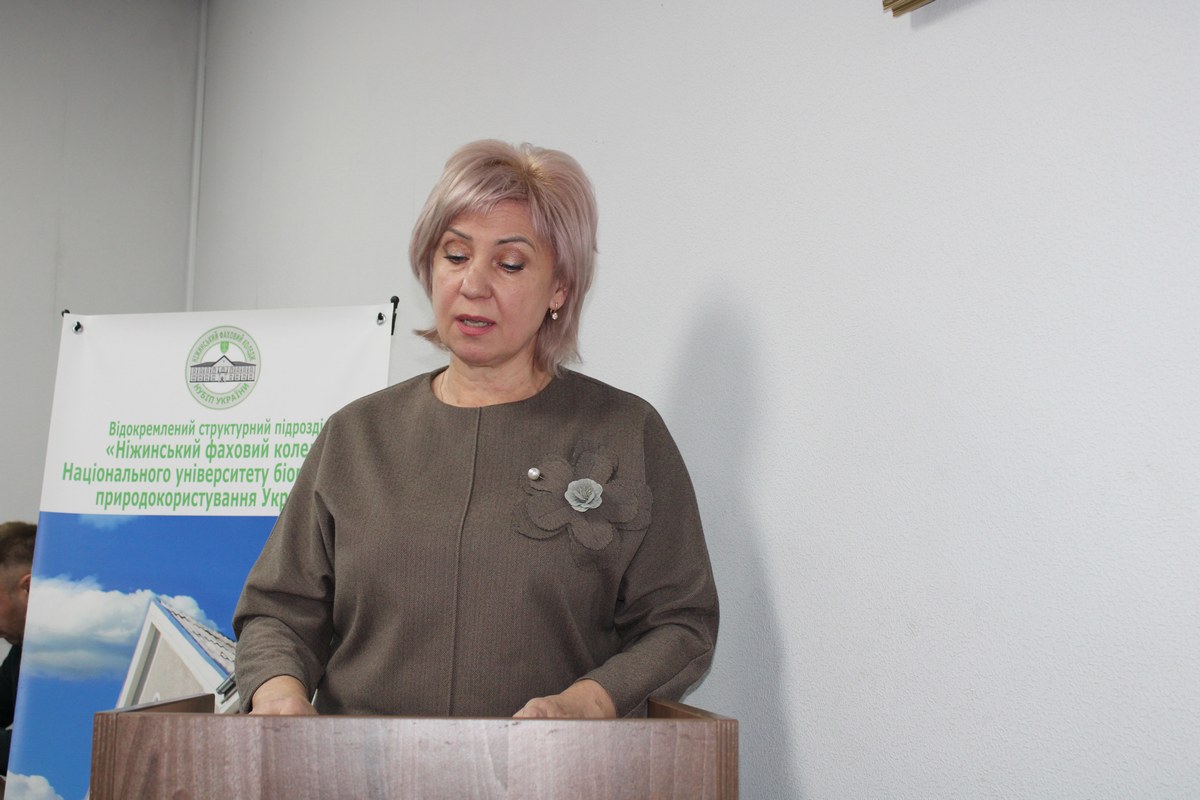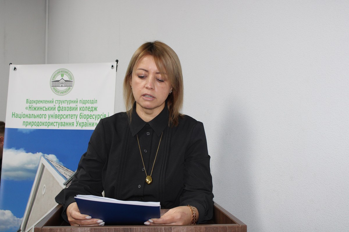 Проректор з науково-педагогічної роботи та розвитку НУБіП України Сергій Кваша передав вітання та висловив підтримку колективу коледжу від ректорату університету. Подякував за плідну роботу та громадянську позицію, наголосивши, що на сьогоднішній день одна з наших основних місій – всіляка допомога й підтримка ЗСУ, а також мобілізація спільних зусиль на освітянській ниві. Відзначив професійний підхід керівництва коледжу до вирішення важливих питань діяльності закладу освіти, високий фаховий рівень педагогічного колективу та наголосив, що університет пишається здобутками своїх відокремлених структурних підрозділів, серед яких достойне місце посідає Ніжинський фаховий коледж НУБіП України. Сергій Миколайович звернув увагу присутніх на те, що якість навчання й кадрове забезпечення, особливо технічних спеціальностей, має постійно залишатися в пріоритеті адміністрації та всього колективу. Зробив акцент на важливості виховної роботи й національно-патріотичного виховання студентської молоді, адже всі мають знати, пам’ятати та поважати історію й традиції свого народу. Зупинився на питаннях щодо пошуку нових форм профорієнтаційної роботи та необхідності постійного вдосконалення методик викладання з урахуванням щоденних викликів. Подякував колективу коледжу за безперервну допомогу ЗСУ, патріотизм і відданість своїй справі задля розвитку закладу освіти, університету й нашої держави та побажав усім міцного здоров’я, успіхів, неодмінної перемоги та добробуту в кожній родині.