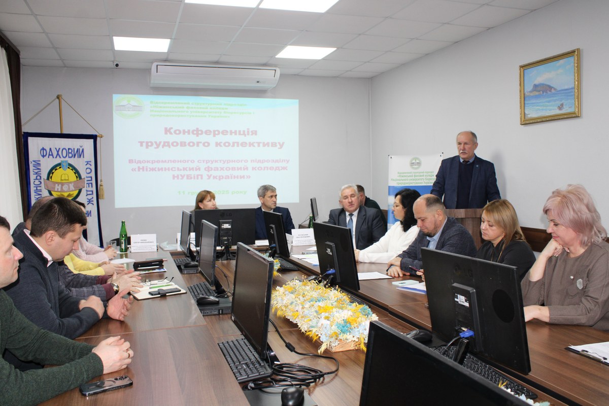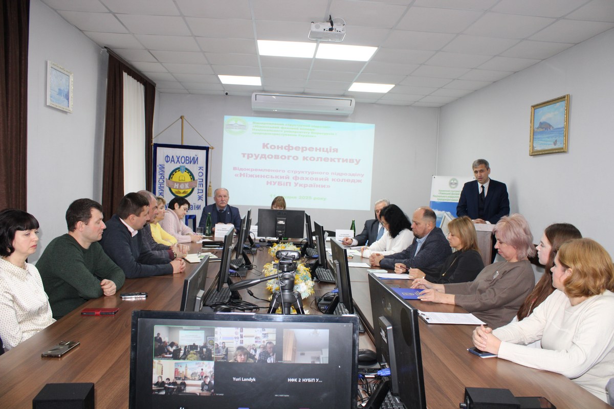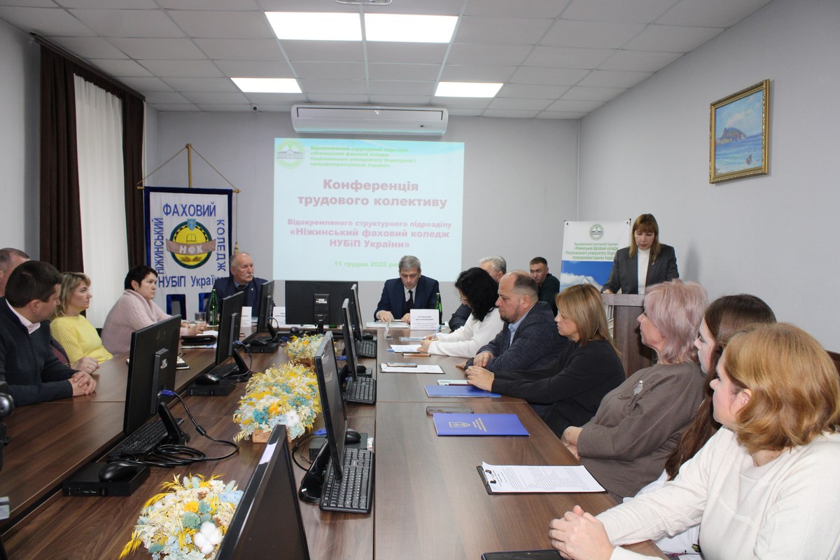 У кінцевому зверненні до учасників конференції директор Олена Литовченко подякувала керівництву НУБіП України за постійну підтримку, надання широких можливостей долучатися до різноманітних заходів, які організовуються та проводяться університетом, за відстоювання інтересів структурних підрозділів. Відзначила, що 2025 рік став черговим підтвердженням того, що колектив Ніжинського фахового коледжу НУБіП України згуртований, професійний та відповідальний. Попри всі виклики воєнного стану, коледж зберіг стабільність, забезпечив якісну освітню діяльність і створив безпечні умови для студентів та працівників. Визначені пріоритети на 2026 рік стануть основою подальшого розвитку закладу, сприятимуть зміцненню освітнього потенціалу та підвищенню конкурентоспроможності студентів на ринку праці. Разом – до нових звершень та мирного майбутнього України!