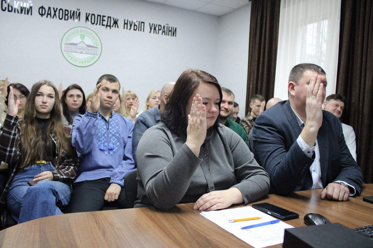 Учасники конференції затвердили звіт директора коледжу, схвалили роботу колективу за звітний період та завдання на 2026 рік.