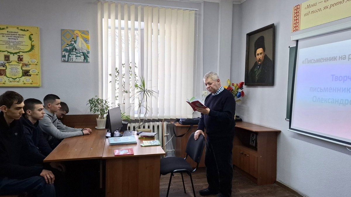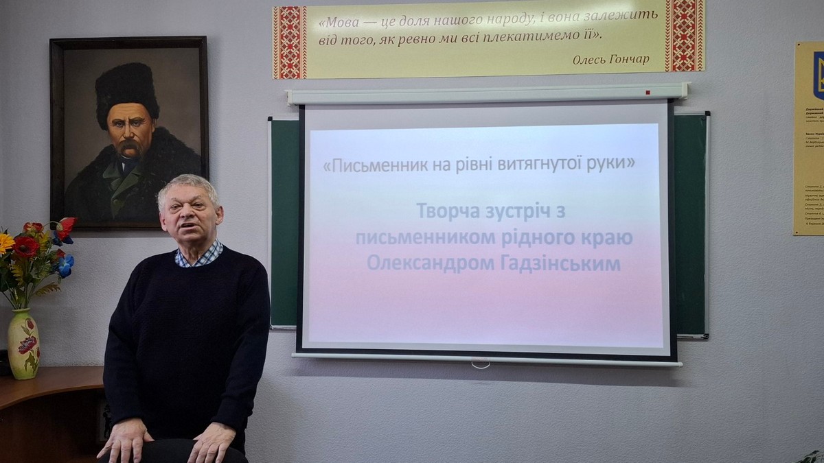 До Міжнародного дня рідної мовиу ВСП «Ніжинський фаховий коледж НУБіП України» відбулася зустріч із Олександром Гадзінським – подія, що об’єднала студентів, викладачів та гостей навколо живого слова сучасного письменника рідного краю. Студенти перших курсів спеціальностей F7 Комп’ютерна інженерія та J8 Автомобільний транспорт спілкувалися з ніжинським літератором, педагогом і перекладачем Олександром Євгеновичем Гадзінським.