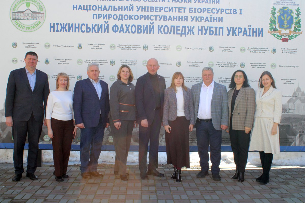 11 березня 2026 року з робочим візитом до Ніжинського фахового коледжу Національного університету біоресурсів і природокористування України завітали представники базового університету у складі начальника відділу регіонального розвитку, координації навчання у ВСП Наталії Овдій, декана механіко-технологічного факультету, голови наглядової ради коледжу Вячеслава Братішка та директора ВСП «Боярський фаховий коледж НУБіП України» Сергія Кропивка.