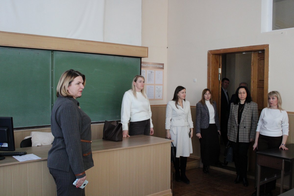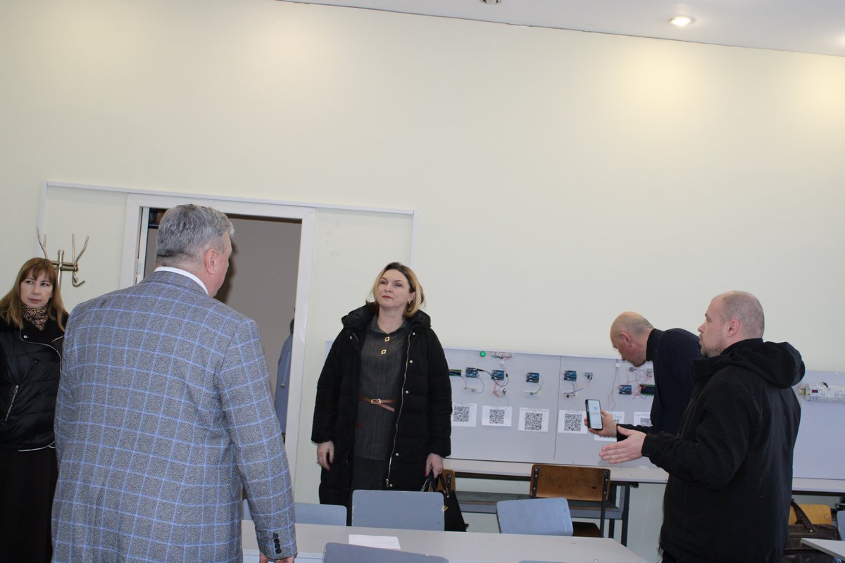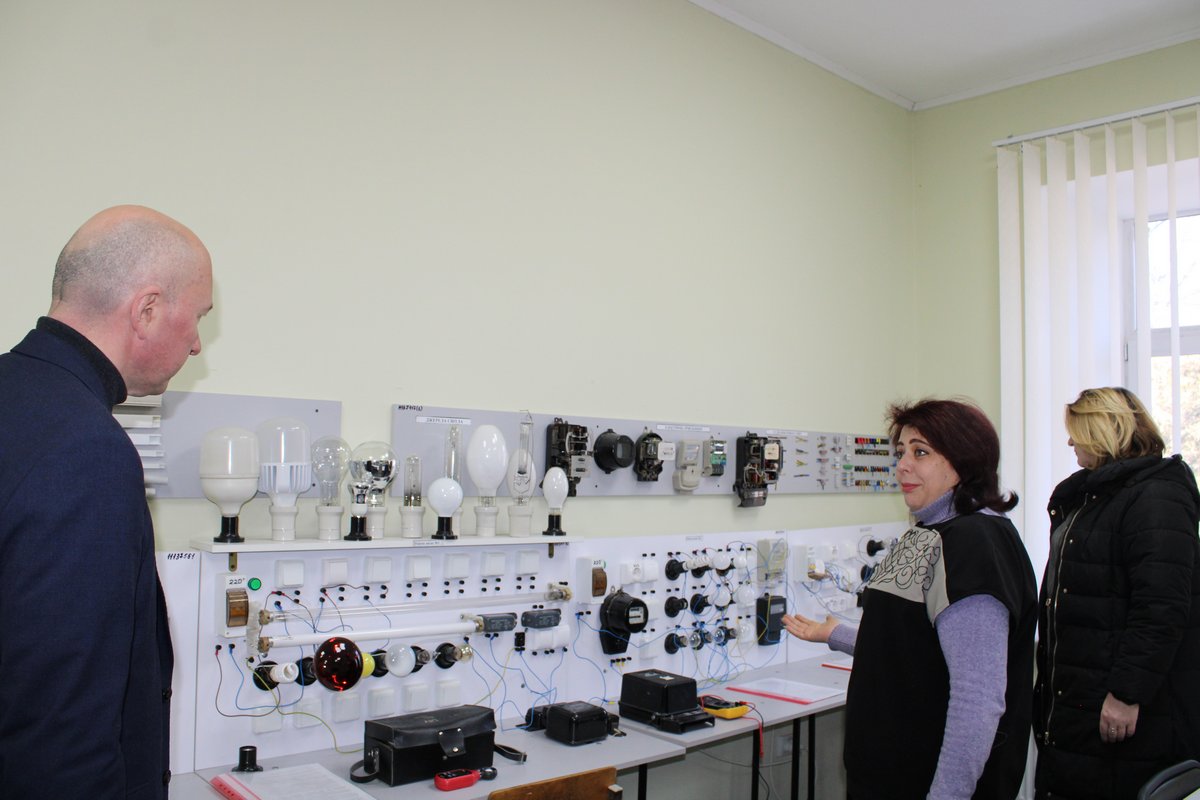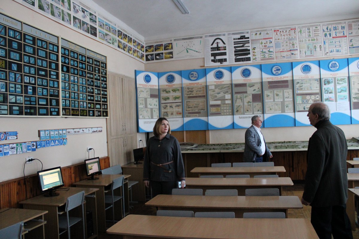Був здійснений огляд матеріально-технічної бази закладу: навчальні кабінети та лабораторії, студентський гуртожиток, укриття.