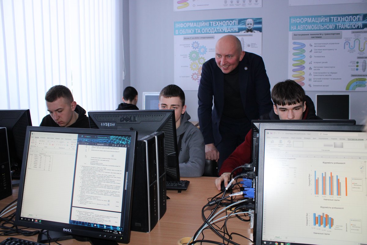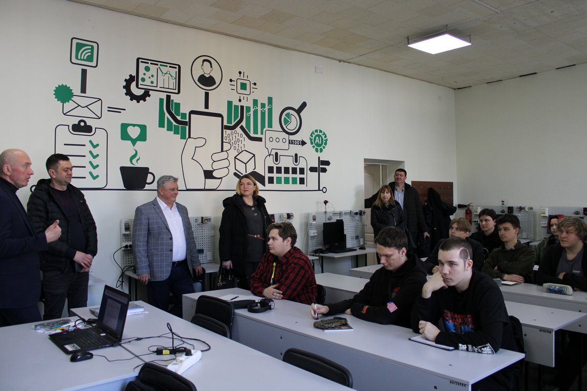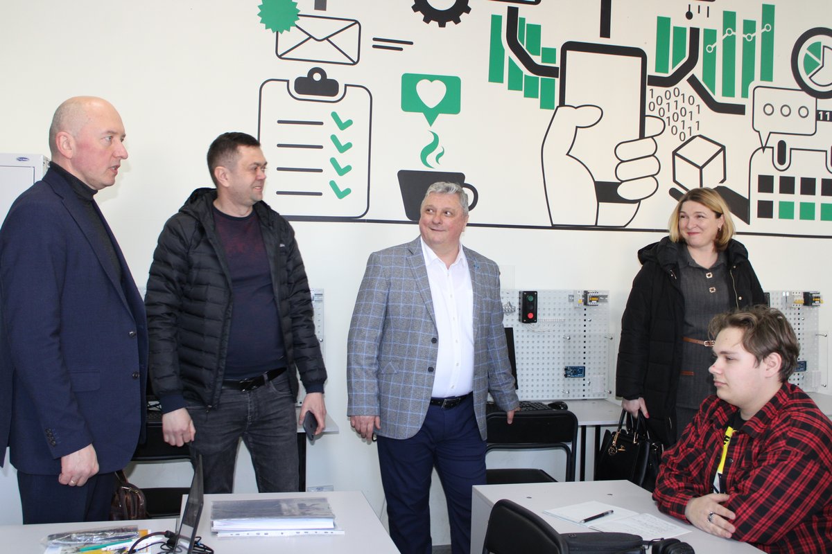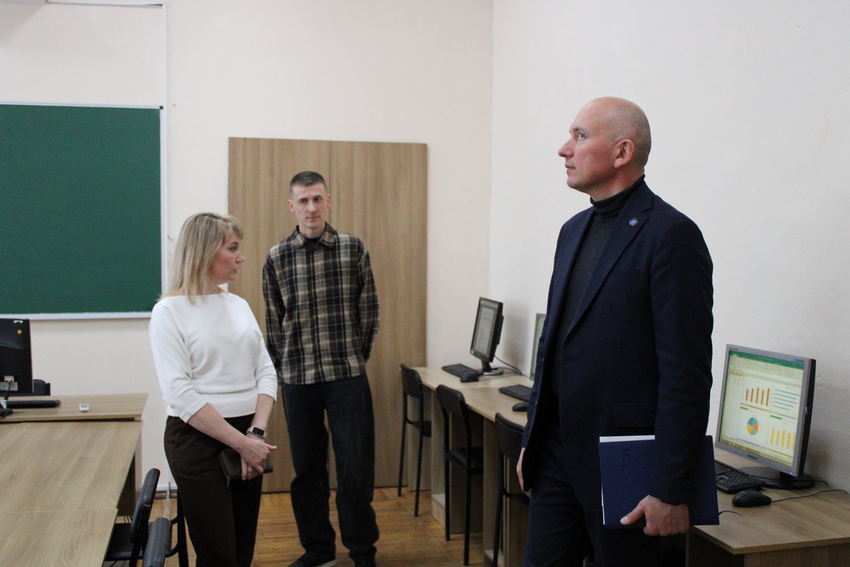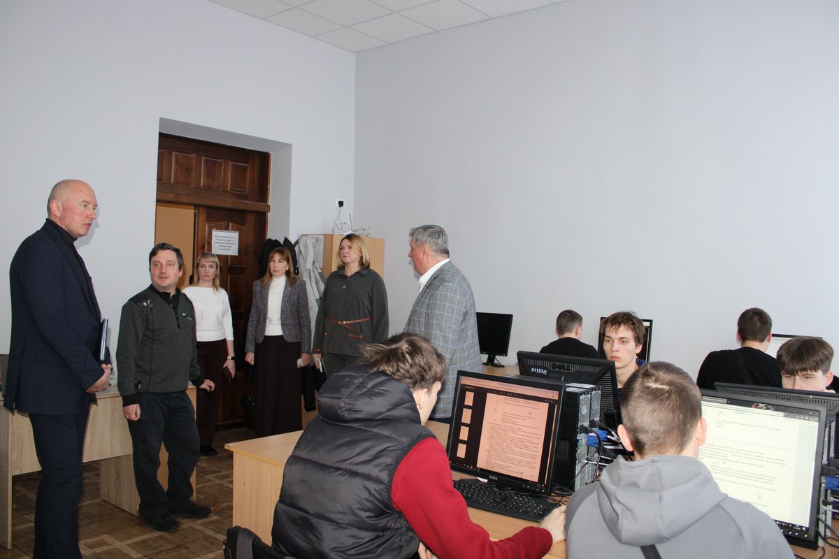Був здійснений огляд матеріально-технічної бази закладу: навчальні кабінети та лабораторії, студентський гуртожиток, укриття.