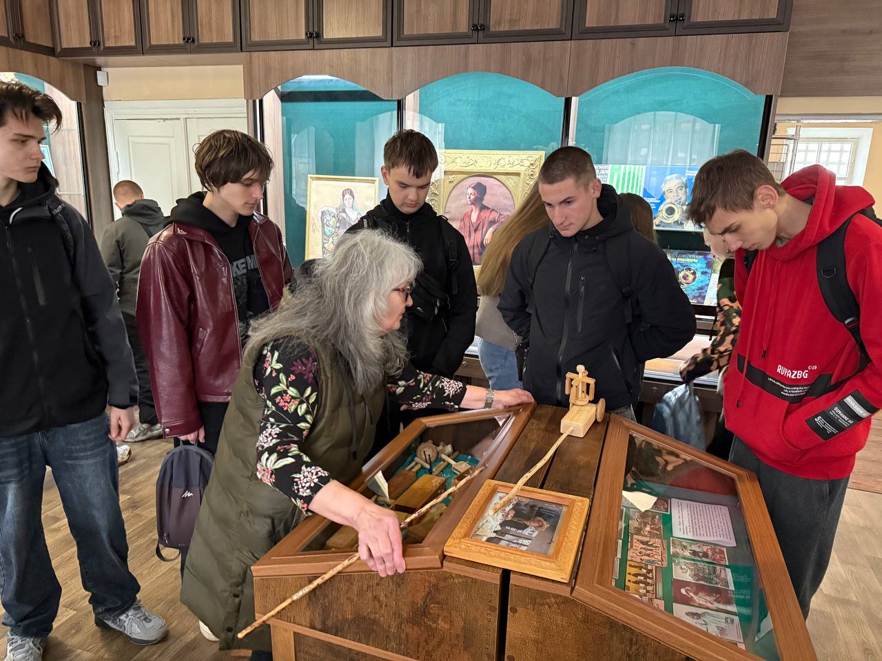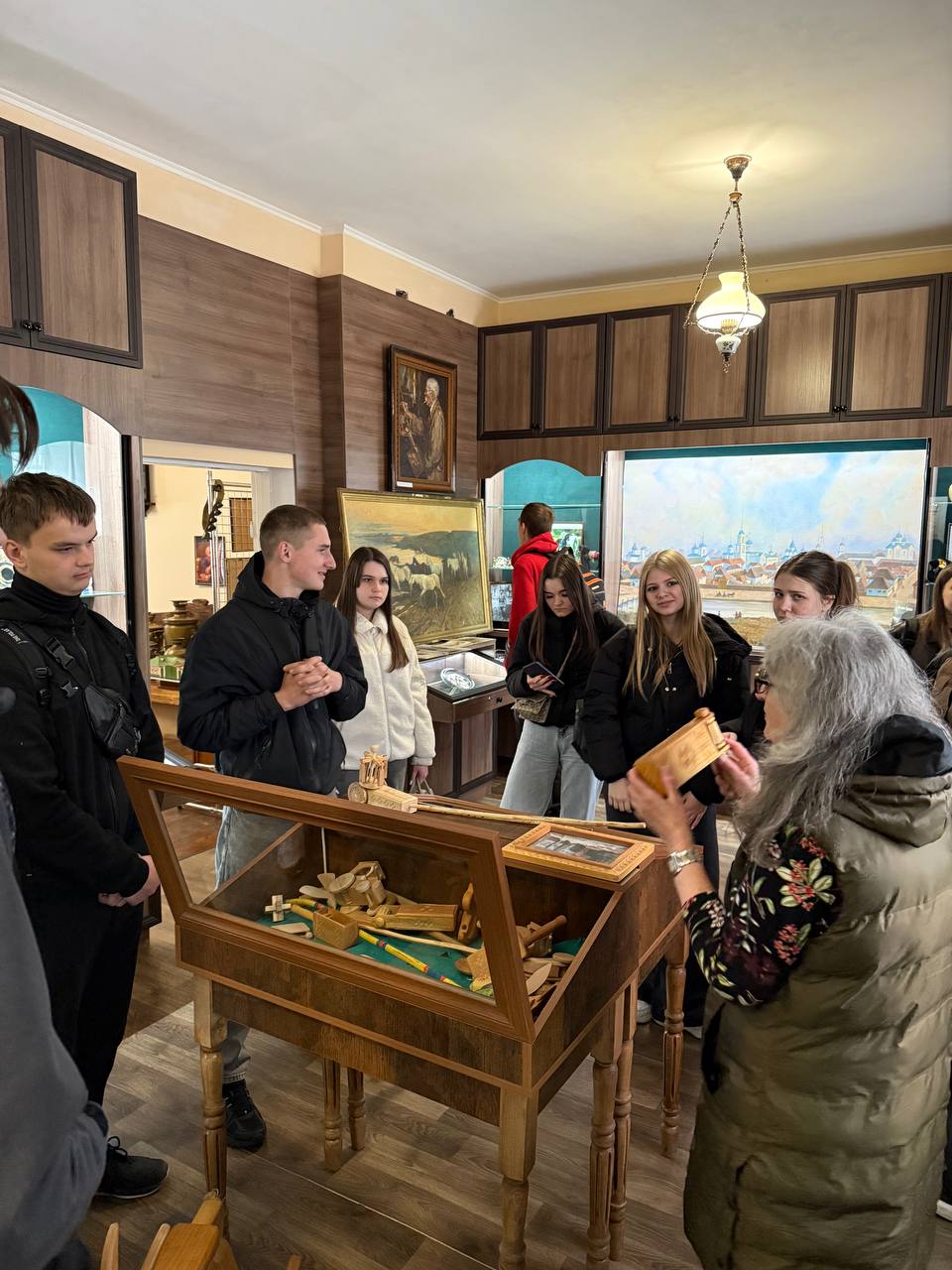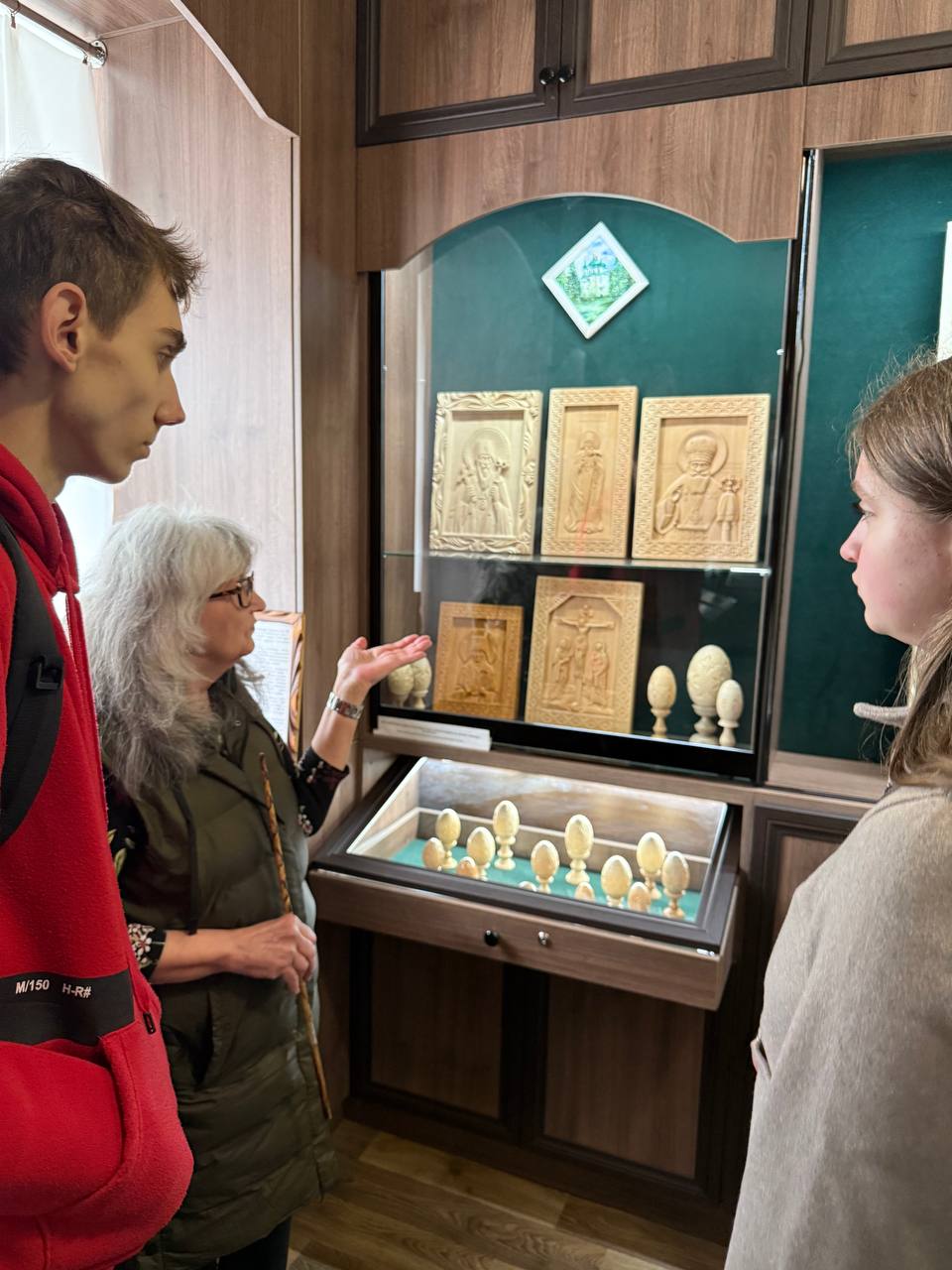 Справжньою мистецькою окрасою візиту стала виставка робіт майстрів народного мистецтва – відомих різьбярів по дереву Сергія Святного та Григорія Василенка. Студенти мали унікальну можливість не лише оглянути філігранні дерев’яні вироби, а й особисто зустрітися з Григорієм Василенком. Спілкування з майстром дозволило студентам з перших вуст дізнатися про тонкощі художнього різьблення та надихнутися творчою енергією митця.