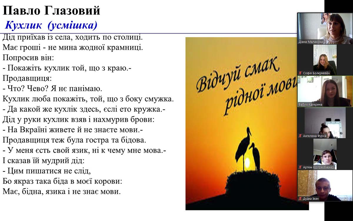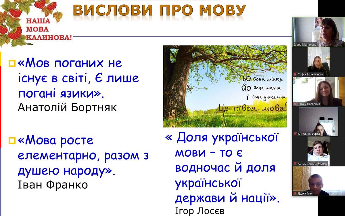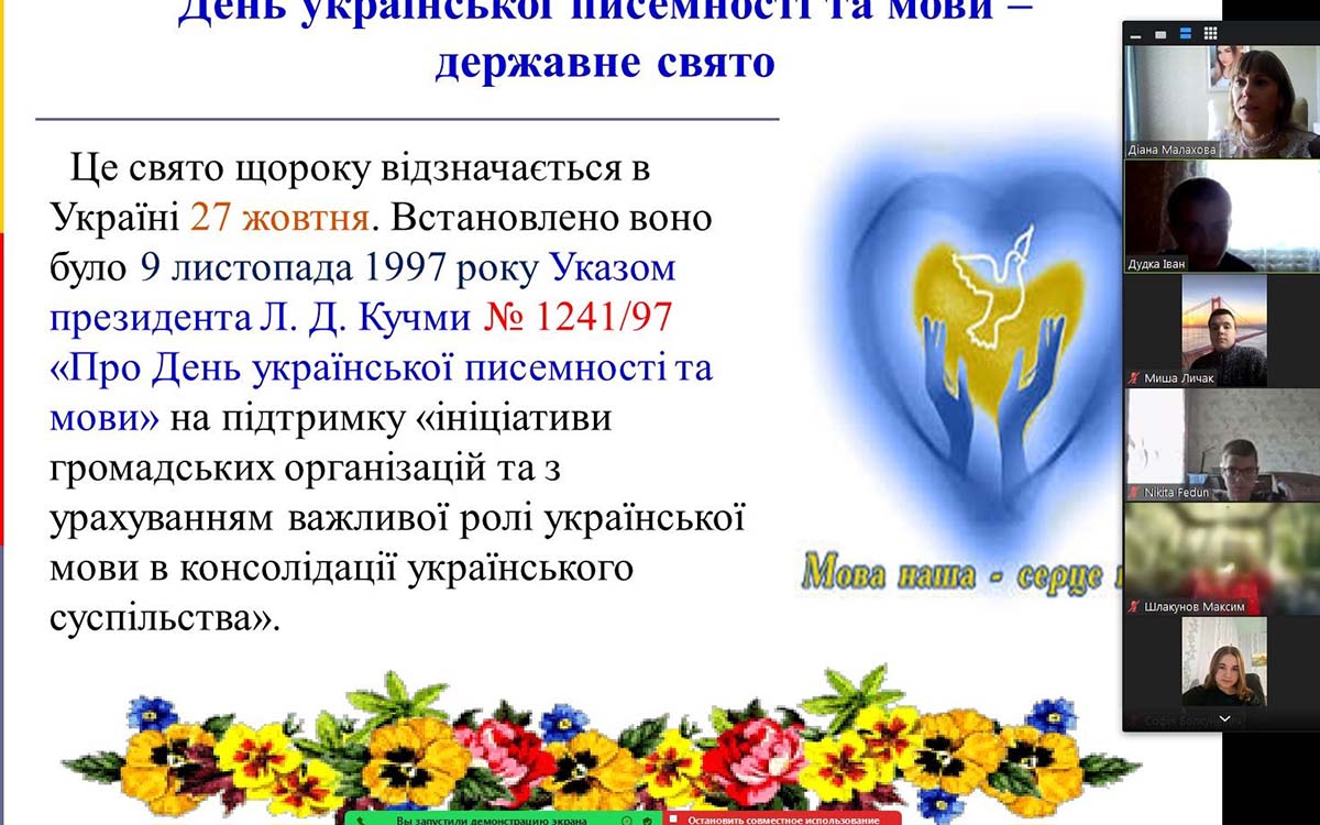 Здобувачі освіти спеціальності G7 «Автоматизація, комп’ютерно-інтегровані технології та робототехніка», група АН251, заздалегідь отримавши випереджувальне завдання: підготувати тематичну серію фотосвітлин, що досліджує певну тему, наприклад, праця Нестора-літописця, Антонієві печери, видатні українці, які доклали руку до становлення та розвитку рідної мови, значення фольклору, як своєрідного її фундаменту. Також, молодь зачитувала вислови про рідну калинову українську мову, а студентки Софія БОЛКУНЕВИЧ та Аня МОЗГОВА декламували вірші сучасних поетів.