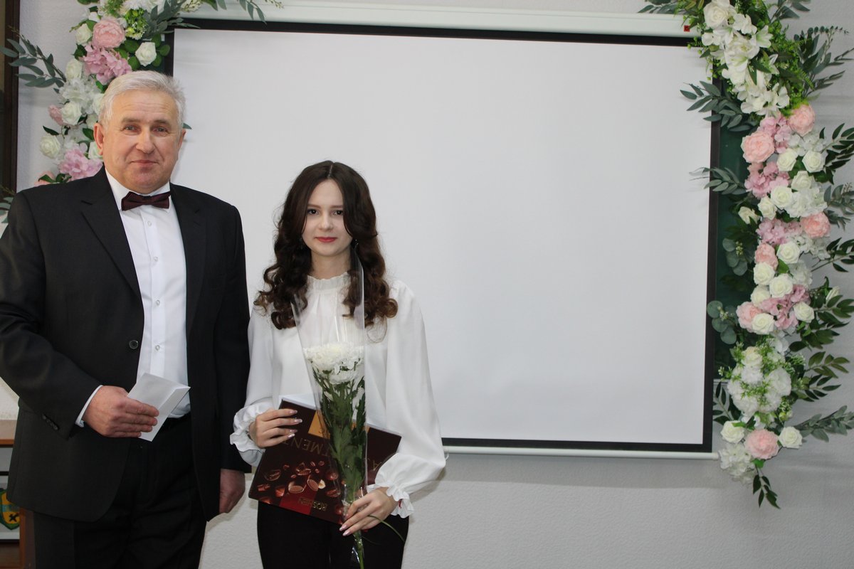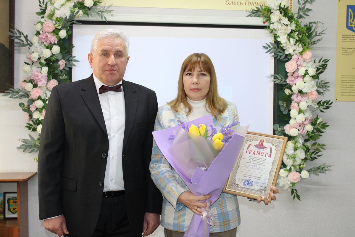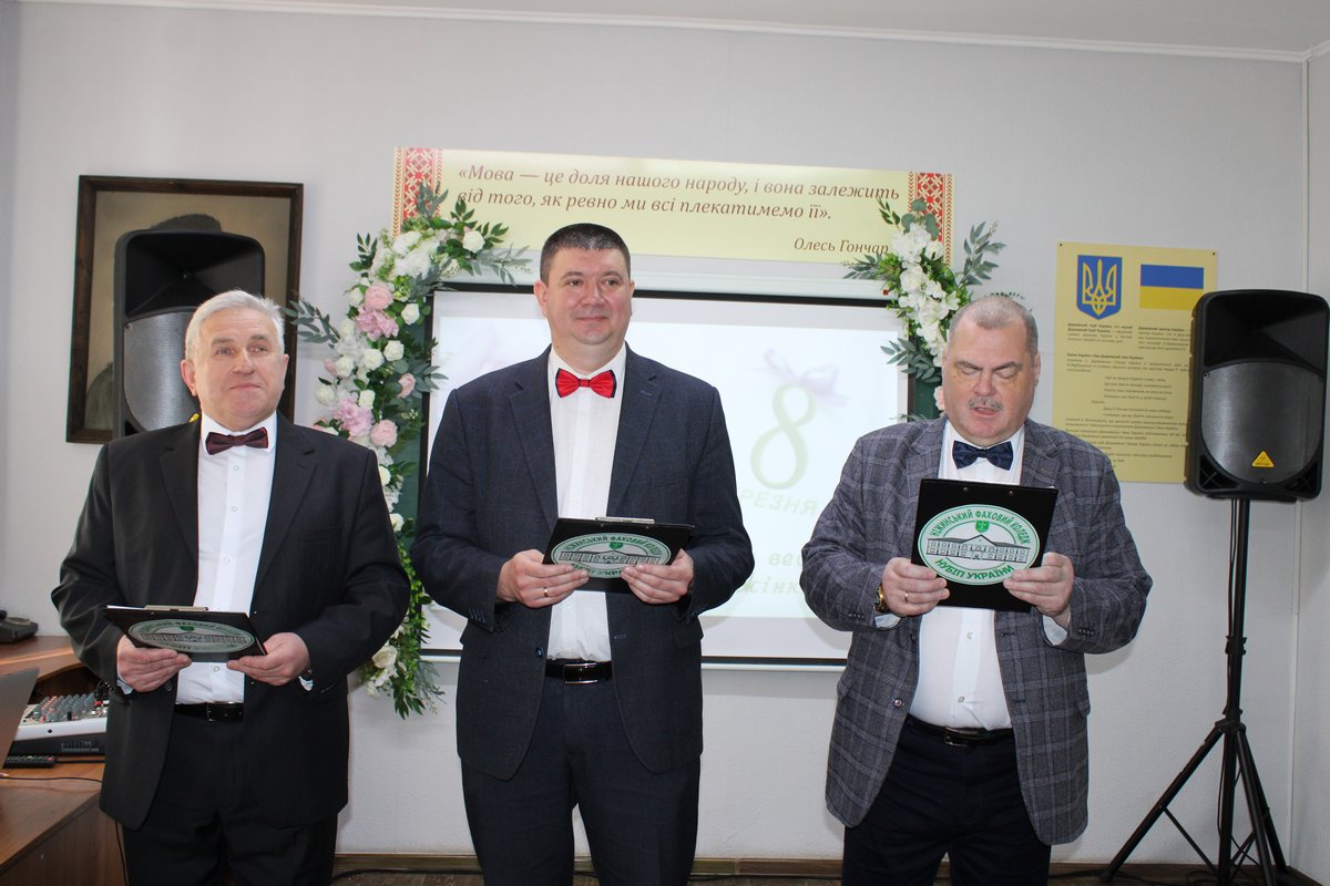 До привітань доєднався голова профспілкової організації коледжу Петро Дейкун, який від імені чоловічої частини колективу висловив щирі слова вдячності та поваги жінкам. У своєму виступі він побажав їм щастя, благополуччя, професійних успіхів, гармонії в житті, а також мирного та сонячного неба.