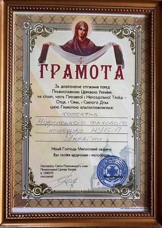 Грамота від настоятеля Свято-Покровського храму Православної Церкви України в місті Ніжин – це не просто відзнака – це символ довіри й підтвердження того, що добрі справи мають силу і значення. Вона підкреслює духовну місію нашого закладу освіти та важливу роль кожного причетного.