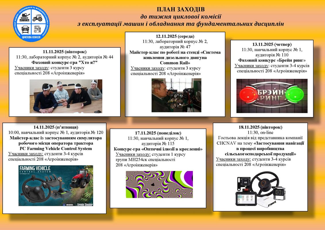ТИЖДЕНЬ ЦИКЛОВОЇ КОМІСІЇ З ЕКСПЛУАТАЦІЇ МАШИН І ОБЛАДНАННЯ ТА ФУНДАМЕНТАЛЬНИХ ДИСЦИПЛІН