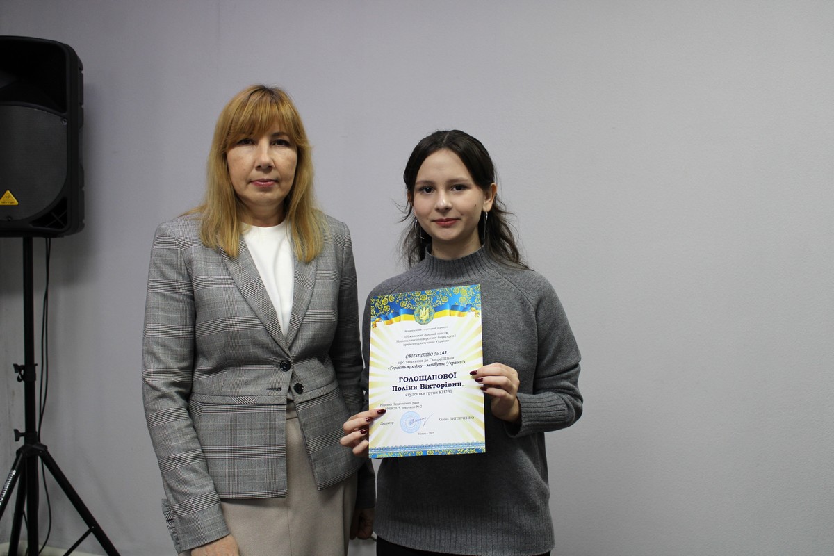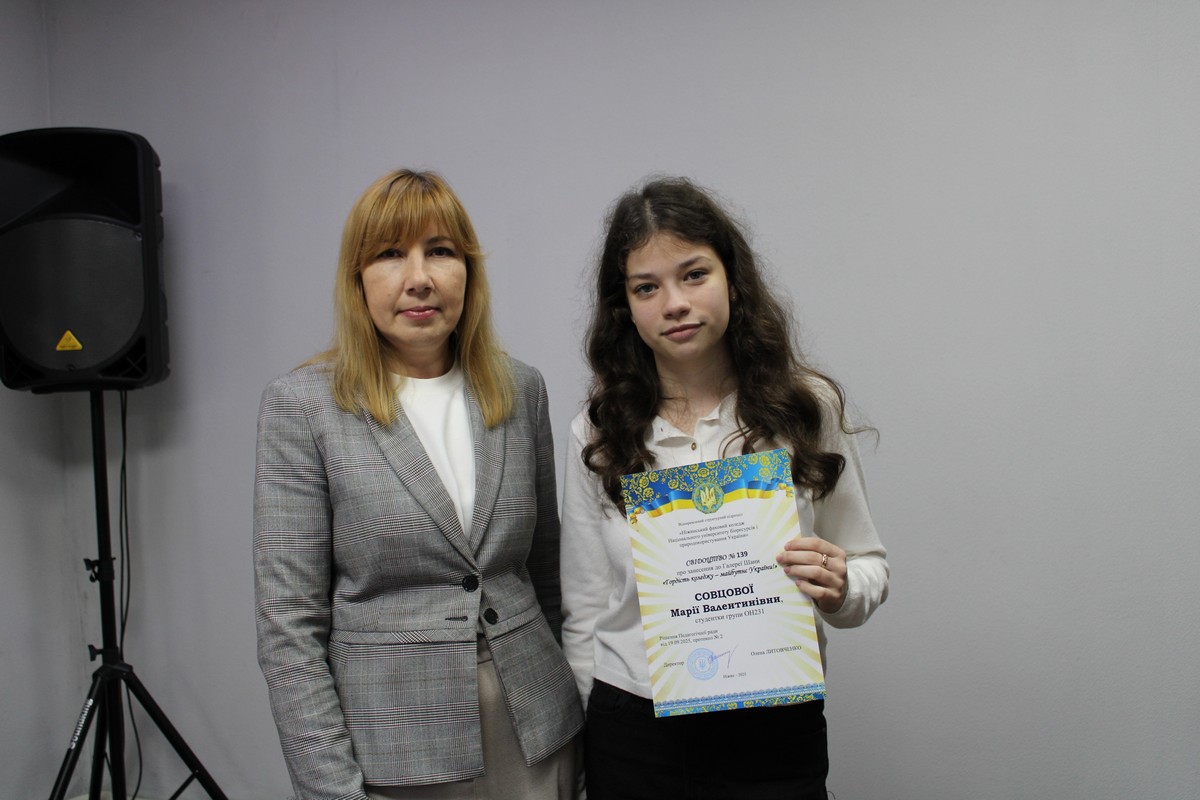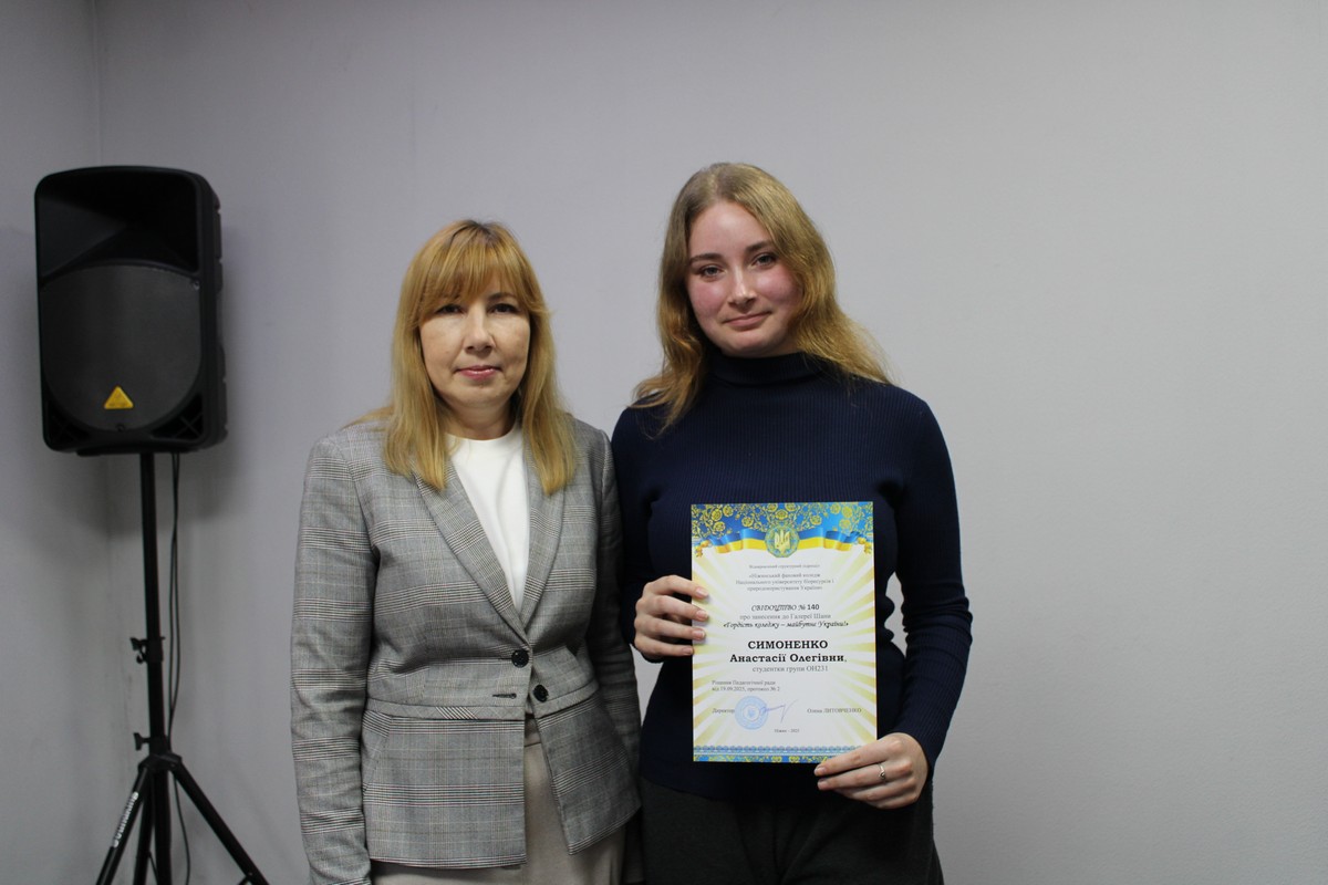 номінація «Громадський діяч» – Шевченко Марія, студентка групи ОН241;