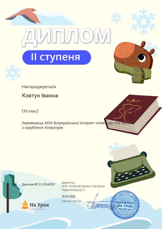 Інтернет-олімпіада «На Урок» — це захопливий інтерактив для студентів та ефективний інструмент перевірки знань для викладачів. Завдання XXVII Всеукраїнської олімпіади із зарубіжної літератури були спрямовані на узагальнення вивченого матеріалу й засвоєння нових тем. Учасники виконували цікаві вправи та отримували заслужені нагороди.