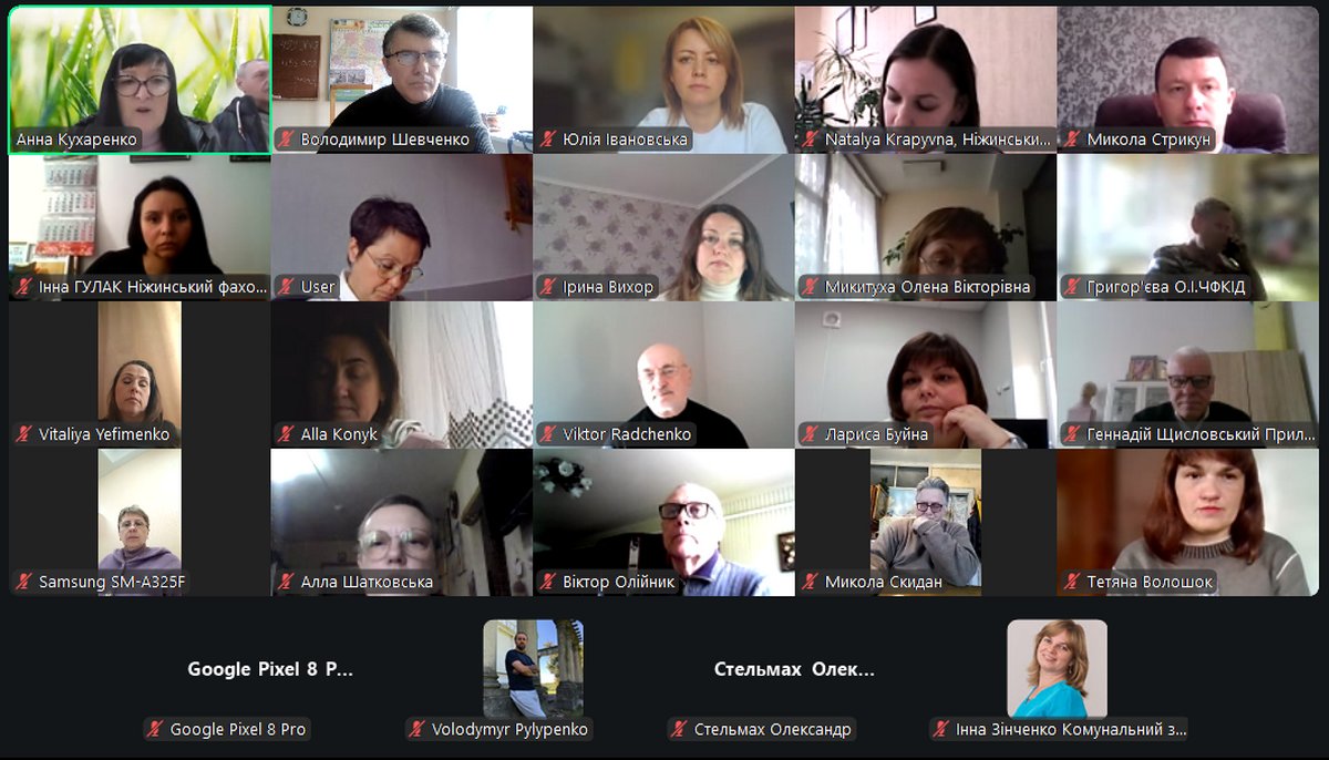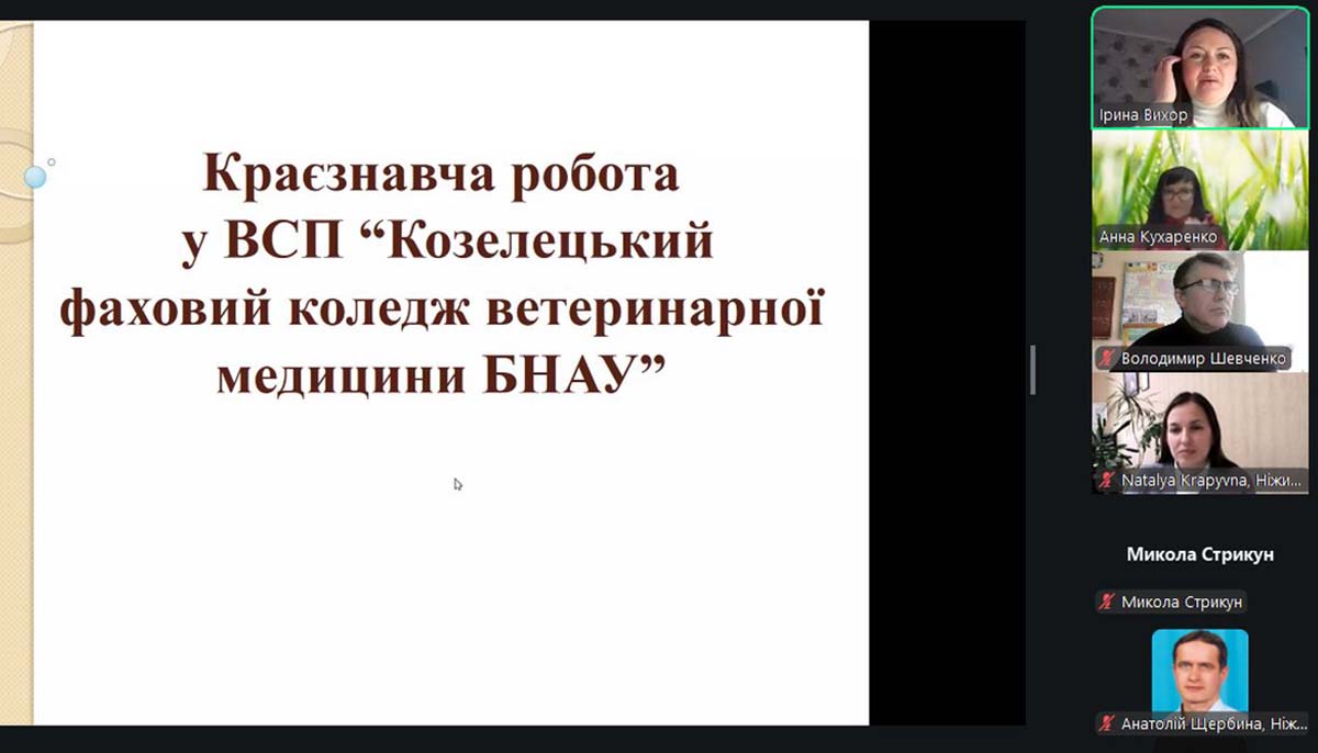 У засіданні взяли участь представники Ніжинського фахового коледжу НУБіП України: голова циклової комісії соціально-гуманітарних дисциплін Юлія Івановська, викладачі Наталія Крапивна, Микола Стрикун, Володимир Шевченко, Анатолій Щербина.