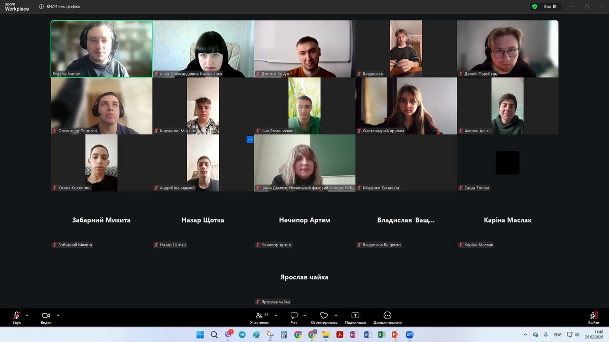26 лютого 2026 року для студентів 2 курсу спеціальності «Комп'ютерна інженерія» групи КН241 викладачем циклової комісії з комп’ютерної інженерії Євгеном Івановим було проведено відкрите заняття з дисципліни «Інженерна та комп'ютерна графіка» в дистанційному форматі.