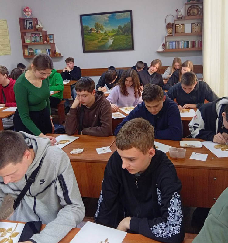 Наукові співробітниці відділу «Художній музей НКМ ім. І. Спаського» Дарина Бережняк та Аліна Машталір коротко ознайомили студентів з історією кавового живопису та його особливостями. Учасники заходу переконалися, що кава може слугувати не лише напоєм, а й художнім матеріалом, який дарує теплі відтінки та незабутні враження. Під керівництвом майстрів першокурсники створювали власні роботи – від простих орнаментів до пейзажів і портретів.