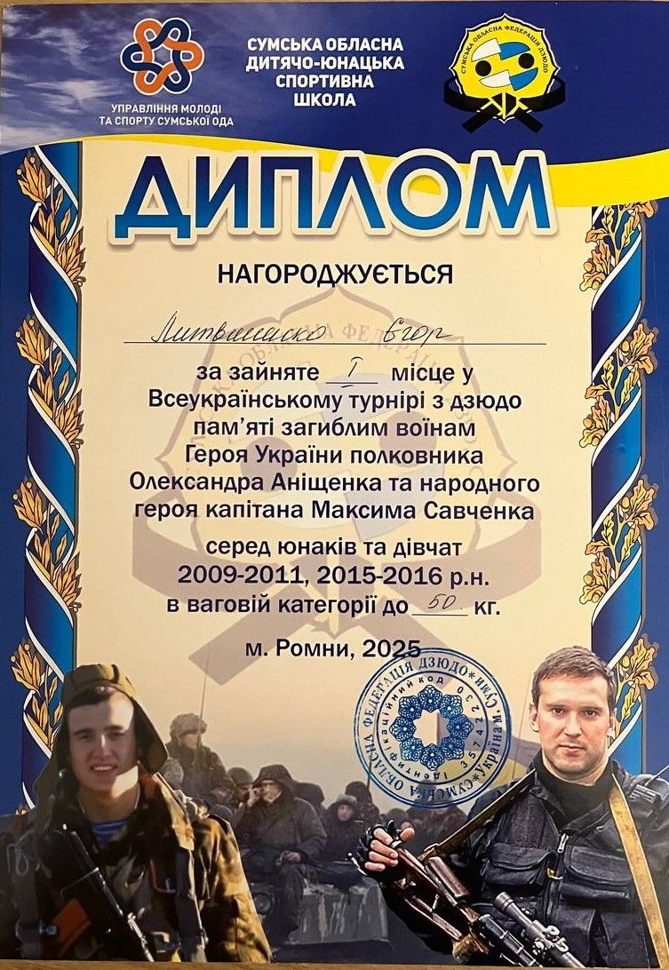 Колектив Ніжинського фахового коледжу НУБіП України щиро вітає студента ІІ курсу спеціальності 275.03 «Транспортні технології (на автомобільному транспорті)» групи ПН241 Литвиненка Єгора, який зайняв перше місце у Всеукраїнському турнірі з дзюдо, присвяченого пам’яті загиблих воїнів «Кубок Незламних». Турнір проходив у місті Ромни та об’єднав майже 300 спортсменів із різних куточків України.