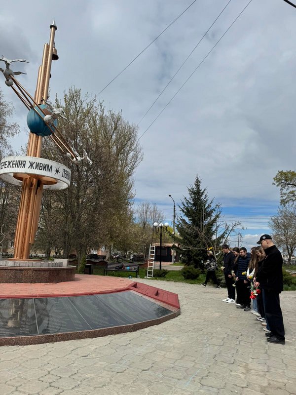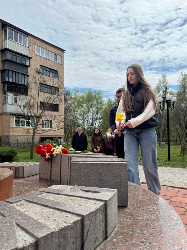 Окремим заходом стало покладання квітів представниками студентської ради коледжу до пам’ятника «Дзвони Чорнобиля», встановленого на честь ліквідаторів та жертв Чорнобильської катастрофи. Цей символічний жест став виявом глибокої шани та вдячності тим, хто ціною власного здоров’я і життя зупинив поширення наслідків трагедії.