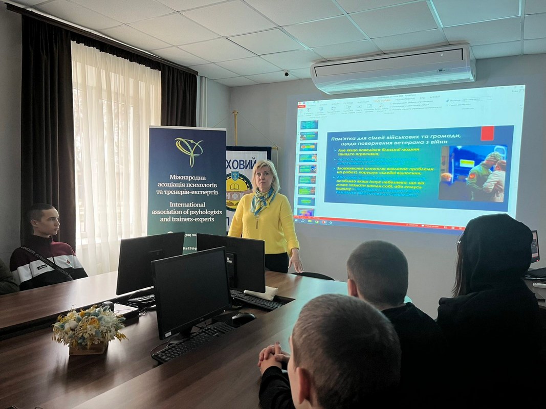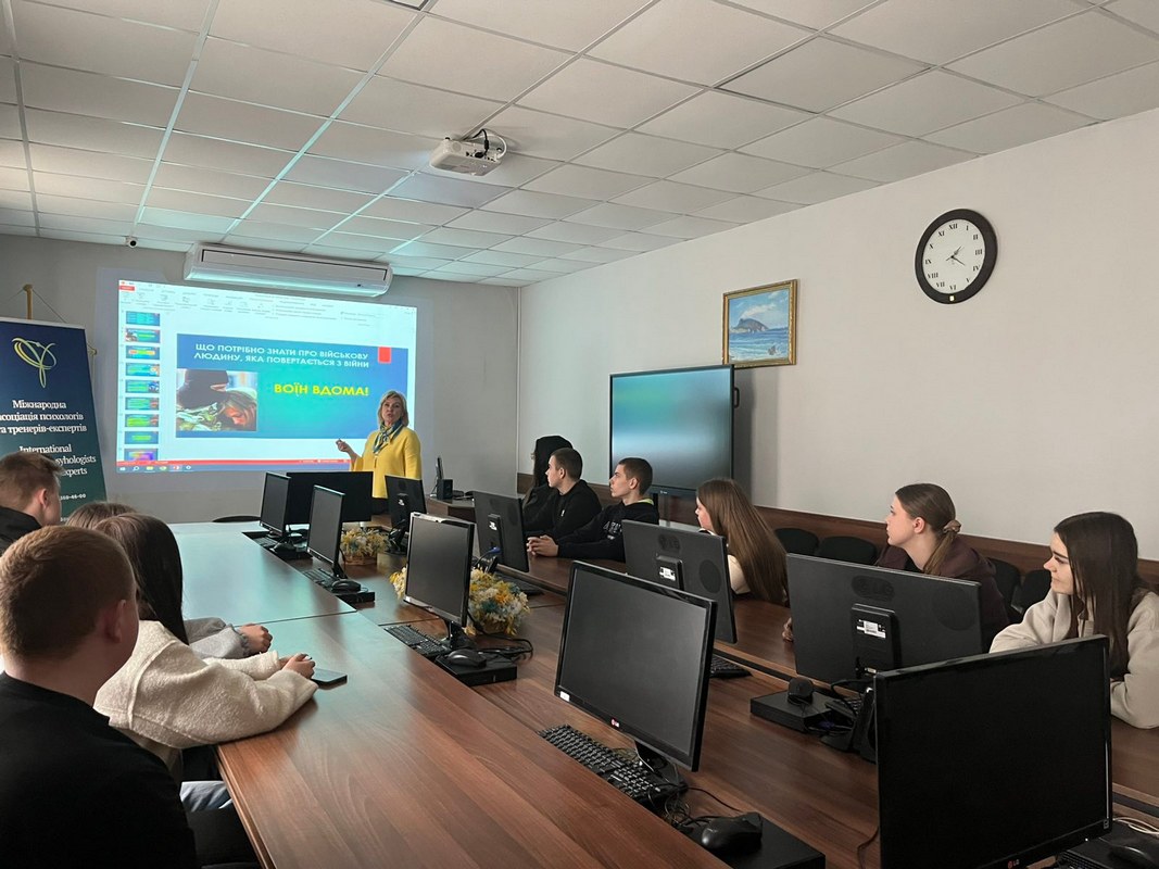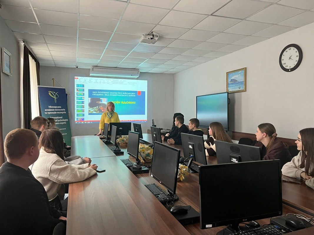 Для студентів, родичі яких перебувають у зоні бойових дій, практичним психологом Іриною Савченко була проведена зустріч під назвою «Воїн вдома. Що потрібно знати, щоб не нашкодити». Під час заходу учасники дізналися про особливості психологічного стану військових після повернення додому та отримали практичні рекомендації щодо спілкування з близькими.