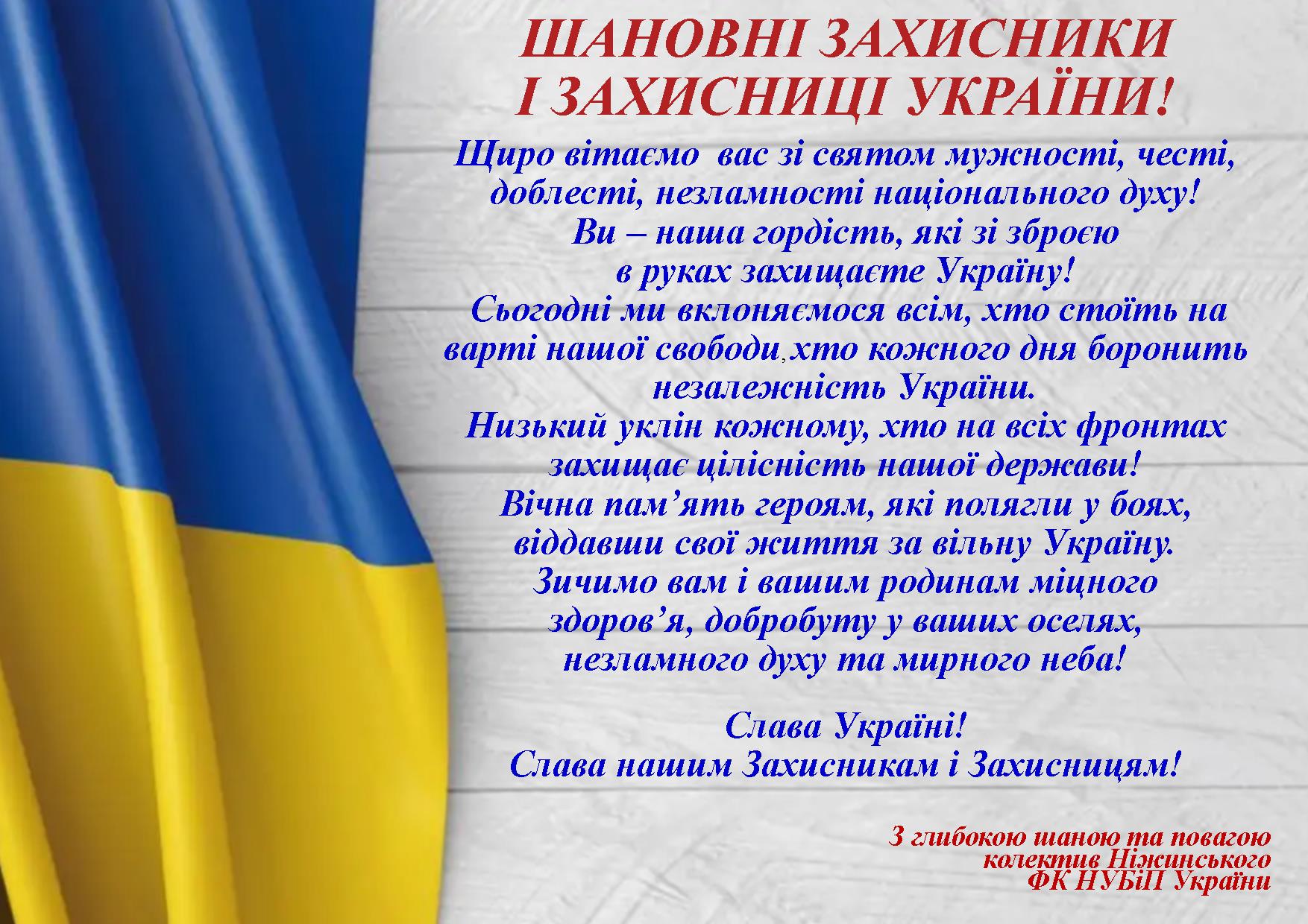 З ДНЕМ ЗАХИСНИКА ТА ЗАХИСНИЦІ УКРАЇНИ!