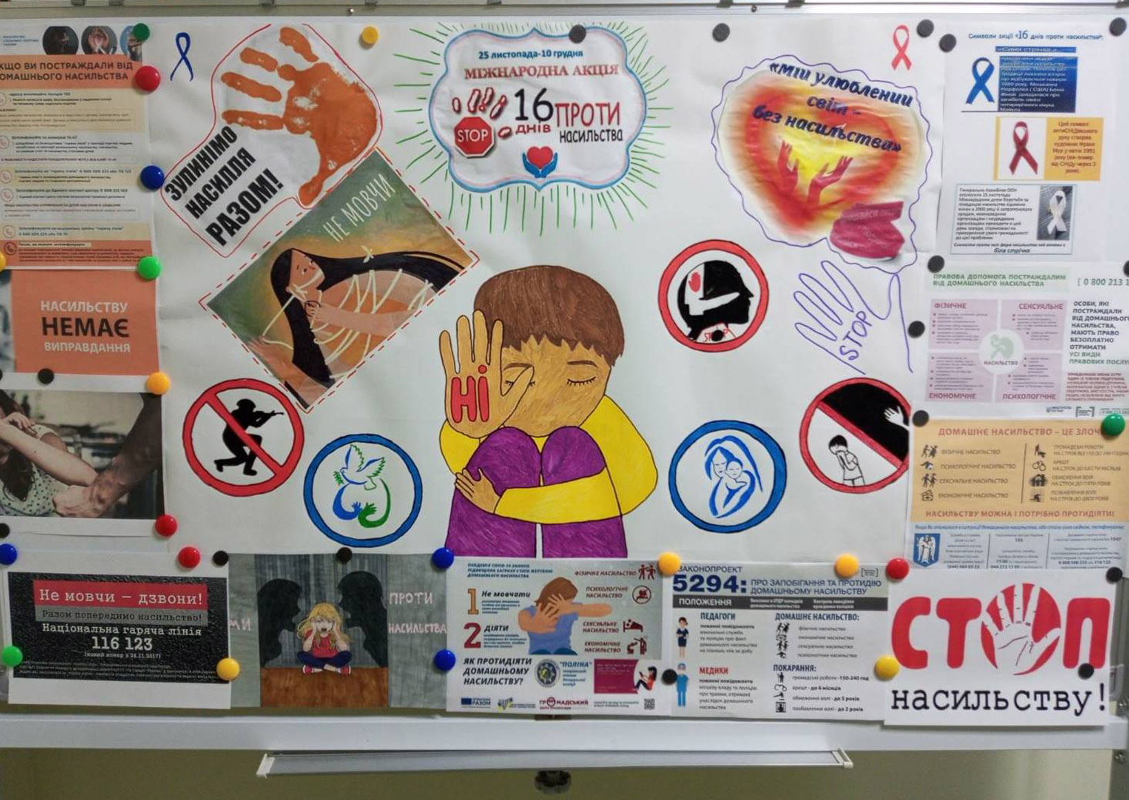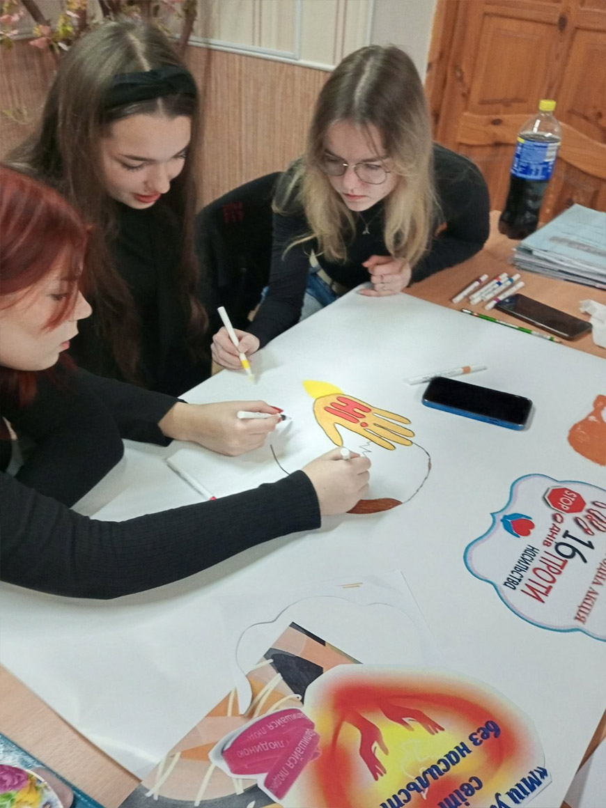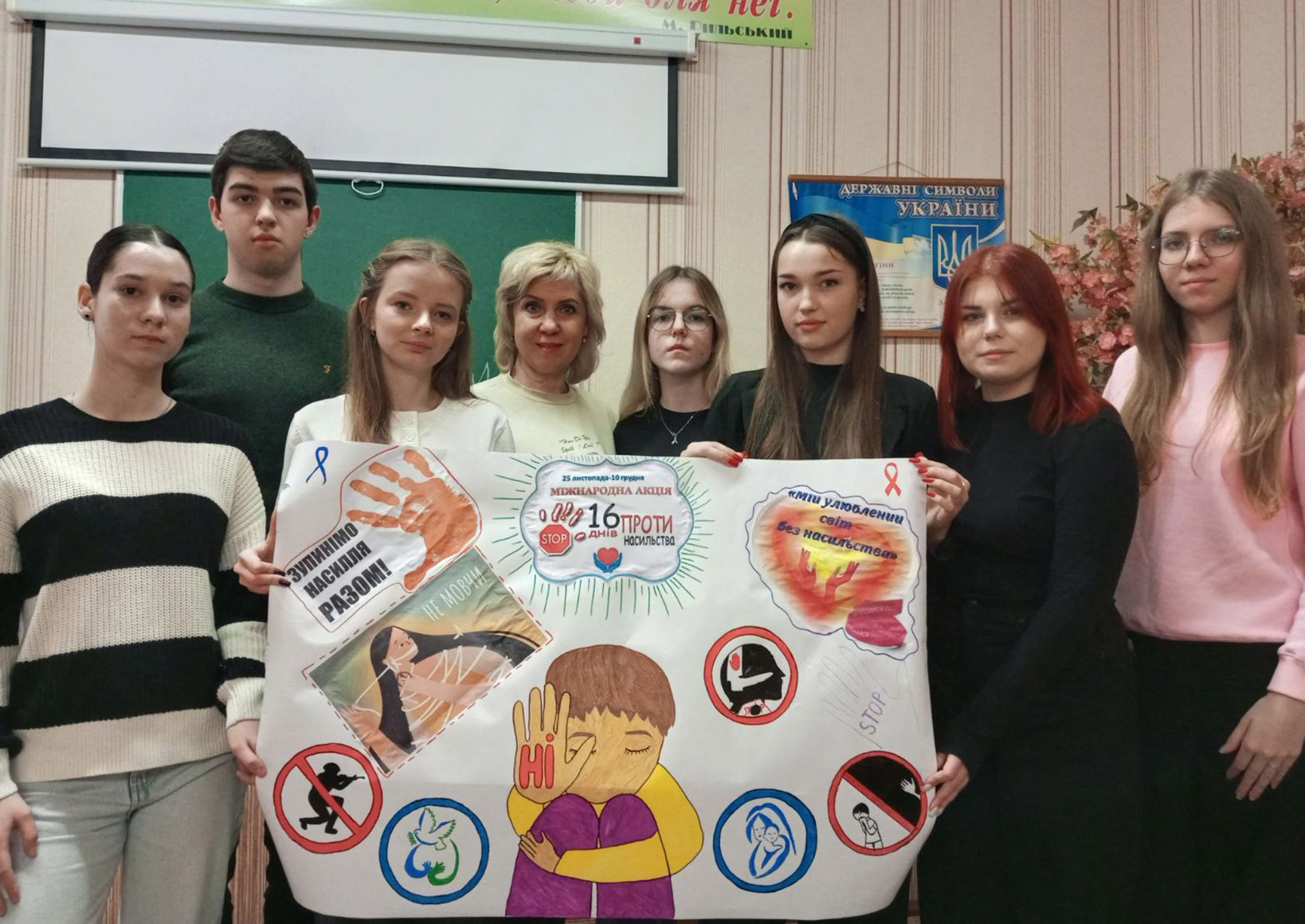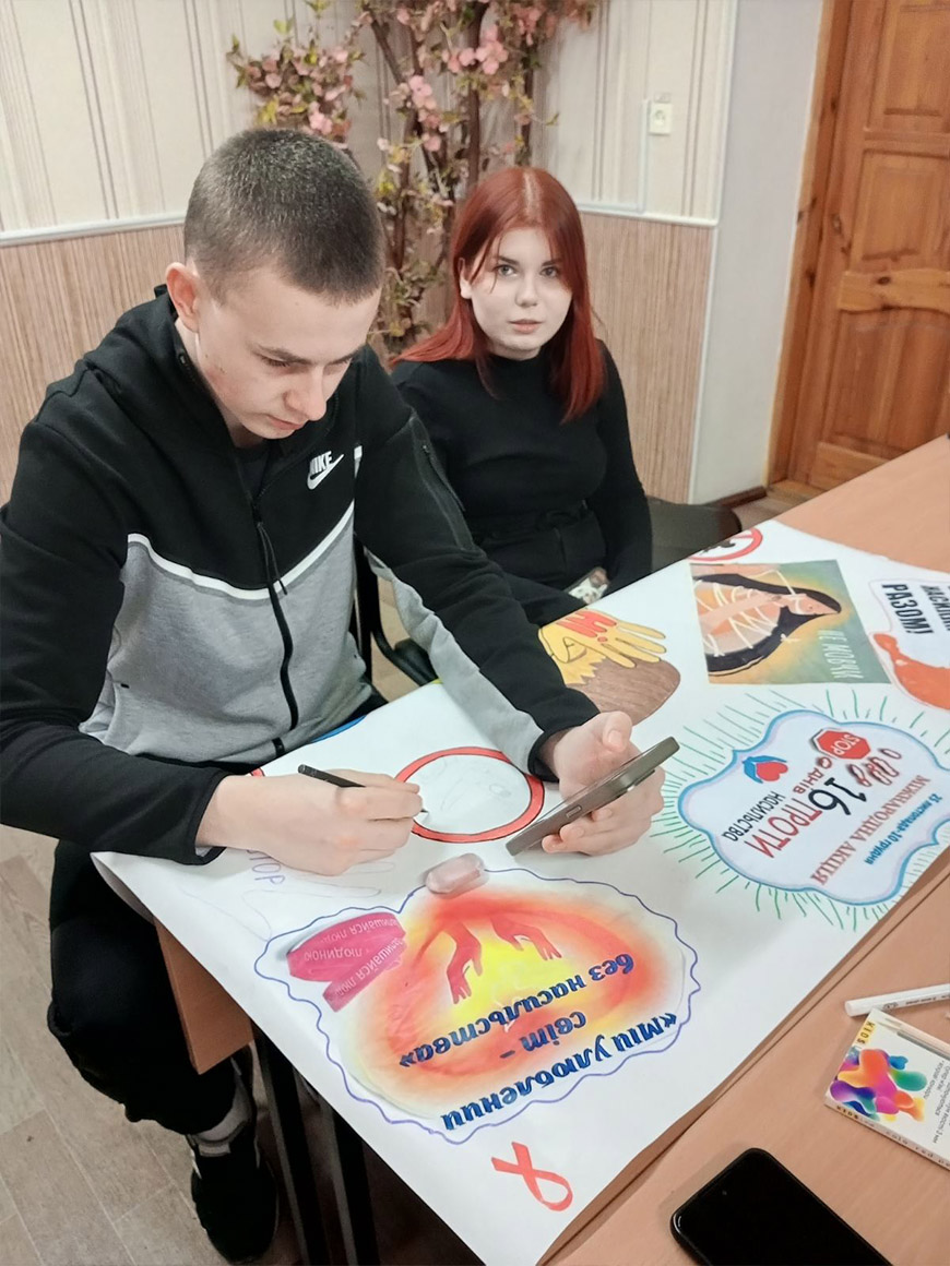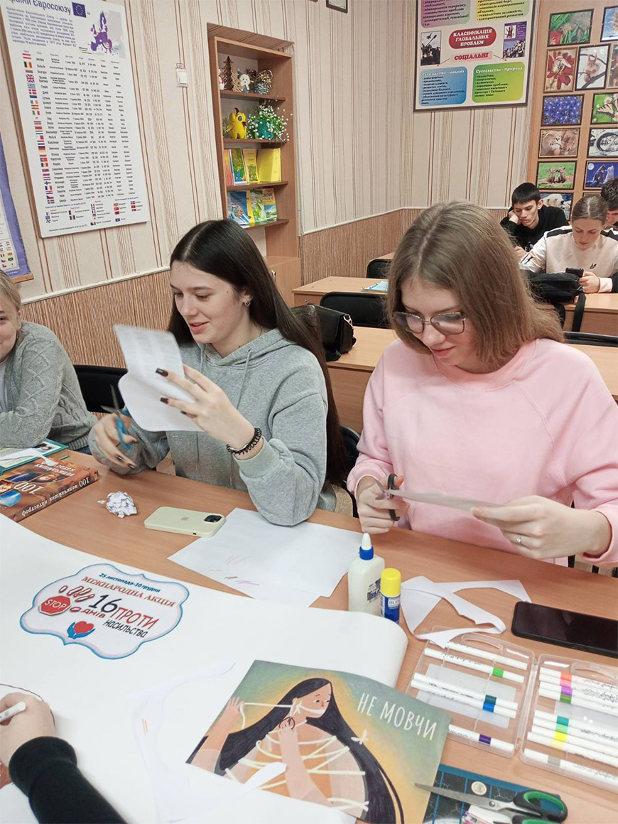 Студентський актив коледжу долучився до оформлення просвітницької виставки «Зупинимо насильство разом», яка висвітлює тему насильства й боротьбу з ним.