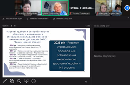 11 березня 2026 року, в режимі онлайн відбулося засідання Обласного методичного об’єднання викладачів обліково-економічних дисциплін закладів фахової передвищої освіти Чернігівської області, участь у якому взяли викладачі циклової комісії спеціальних економічних дисциплін Наталії Потопальської, Тетяни Романенко, Ірини Терещенко та Людмили Федоренко.
